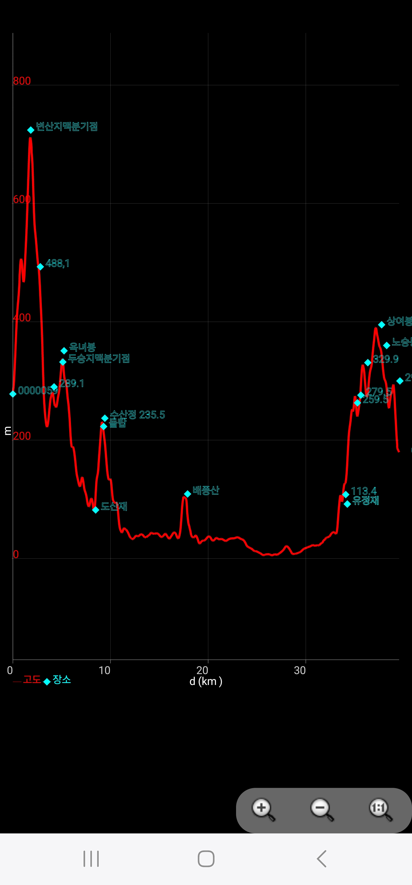 o 11.5키로 지점부터 32키로 지점까지 중간 배풍산을 제외하면 도로가로 진행함.