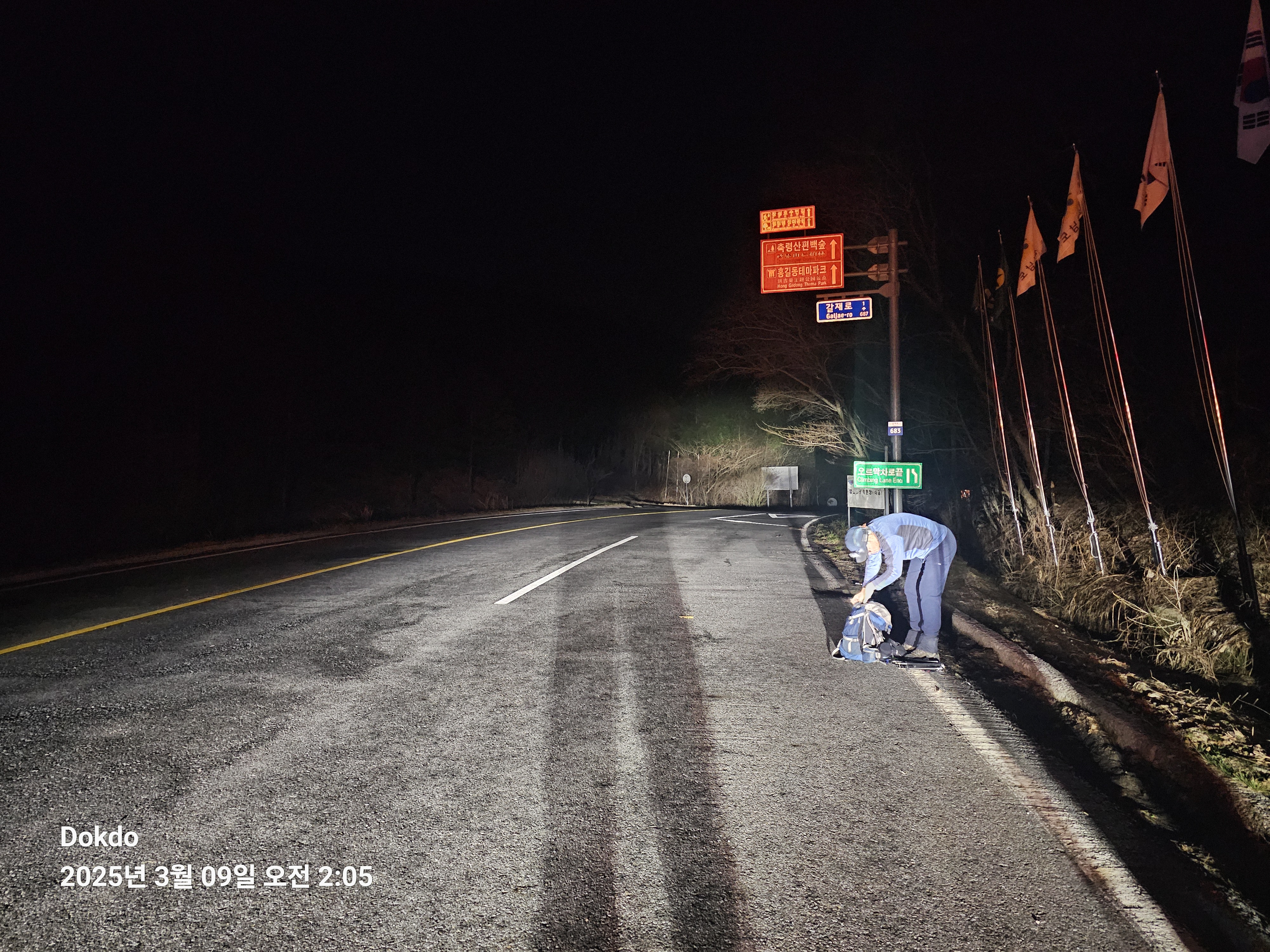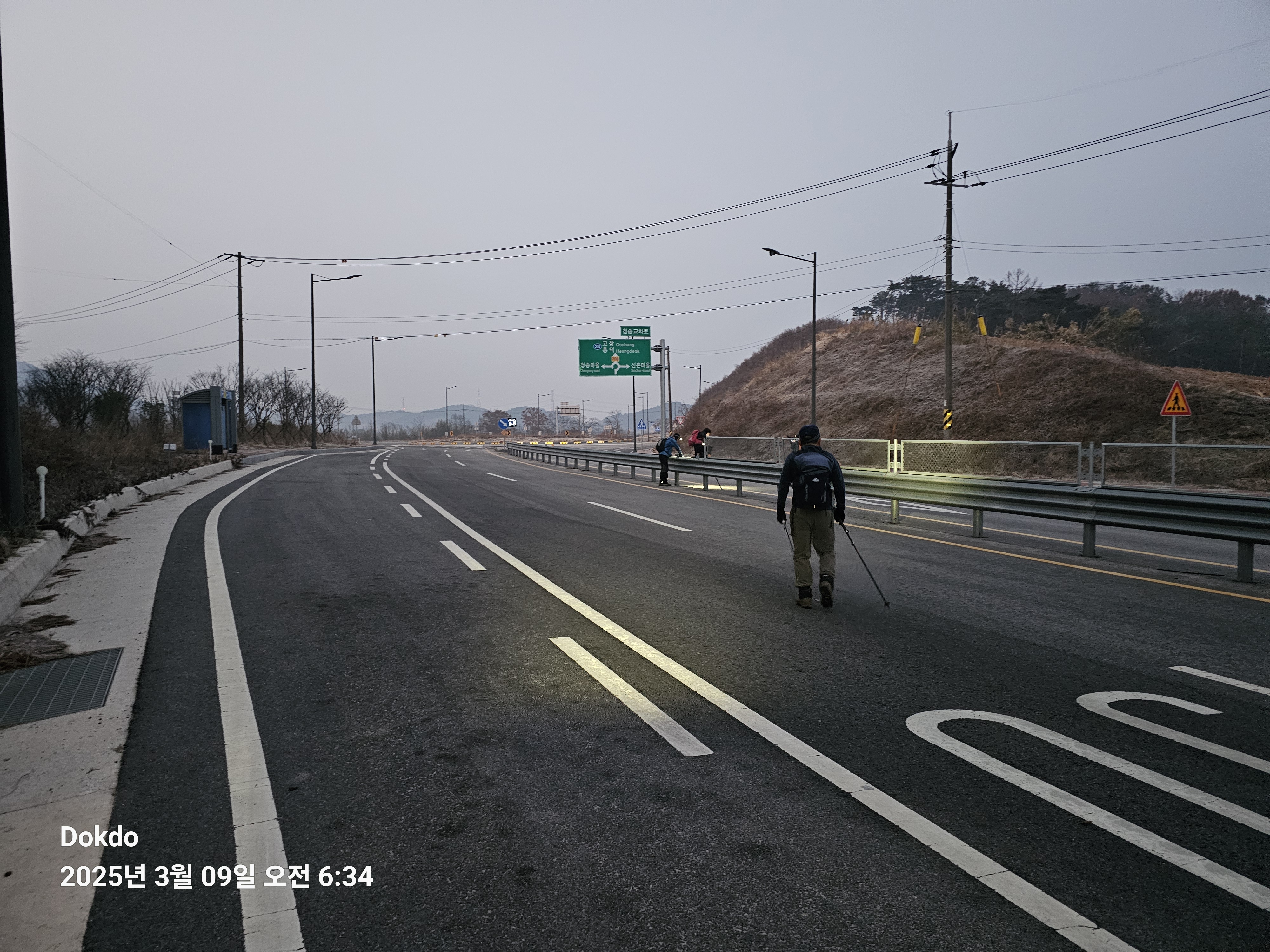편의점에서 아침을 해결하고 배풍산까지 다시 도로로 이동한다,