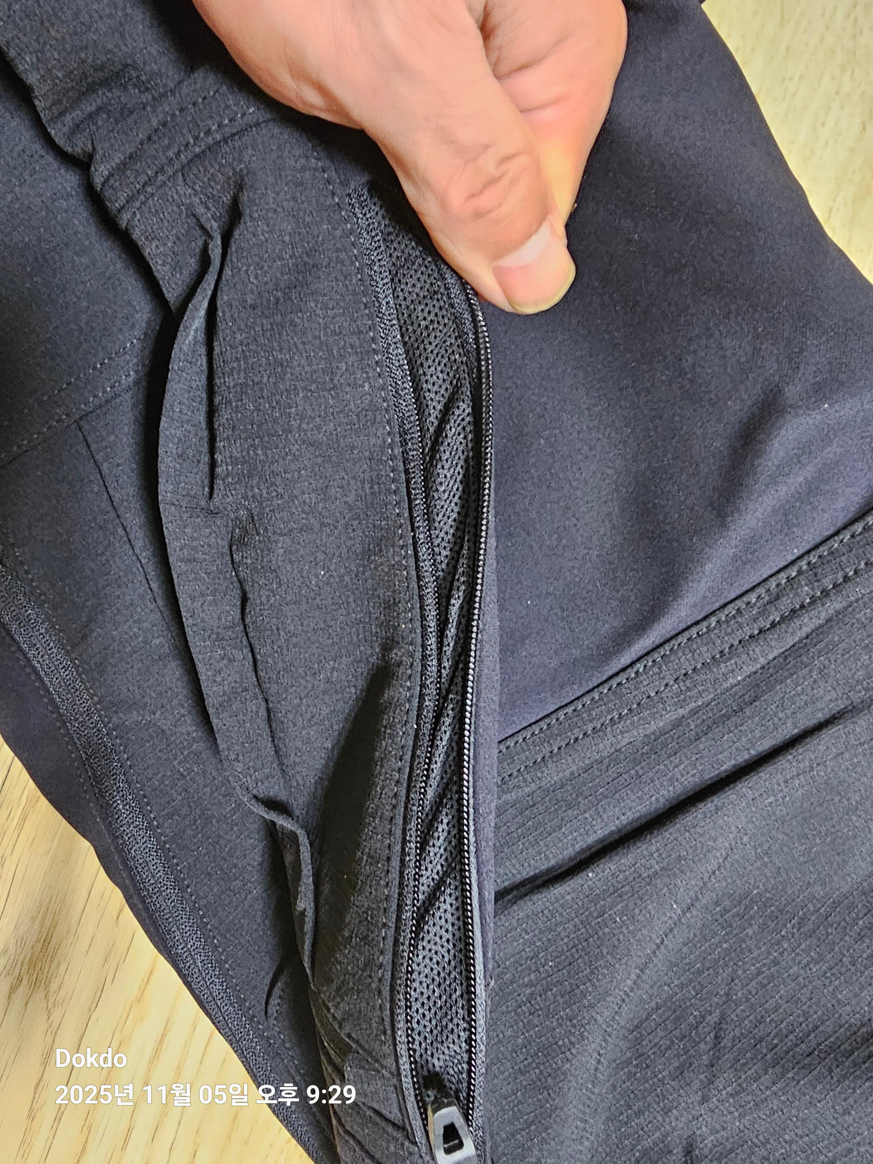 허벅지 벤틸 지퍼도 있고 안쪽으로 망사도 있어 민망하지 않음.