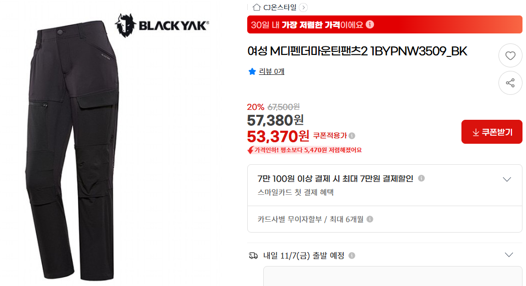 블랙야크의 M디펜더마운틴팬츠.