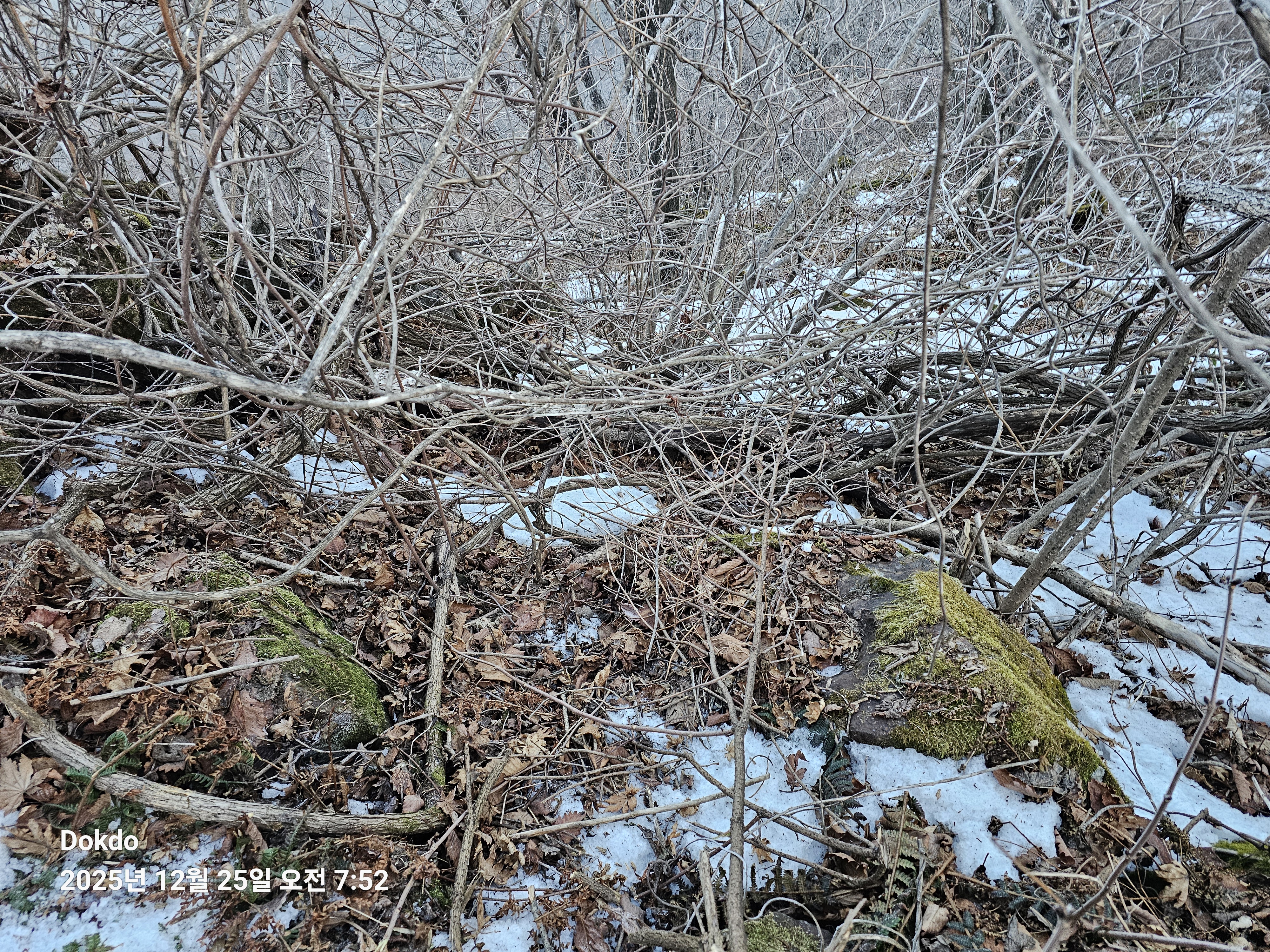 - 등로 곳곳에 눈이 녹아 얼어붙은 얼음이 있어 아이젠이 필요한 상황.