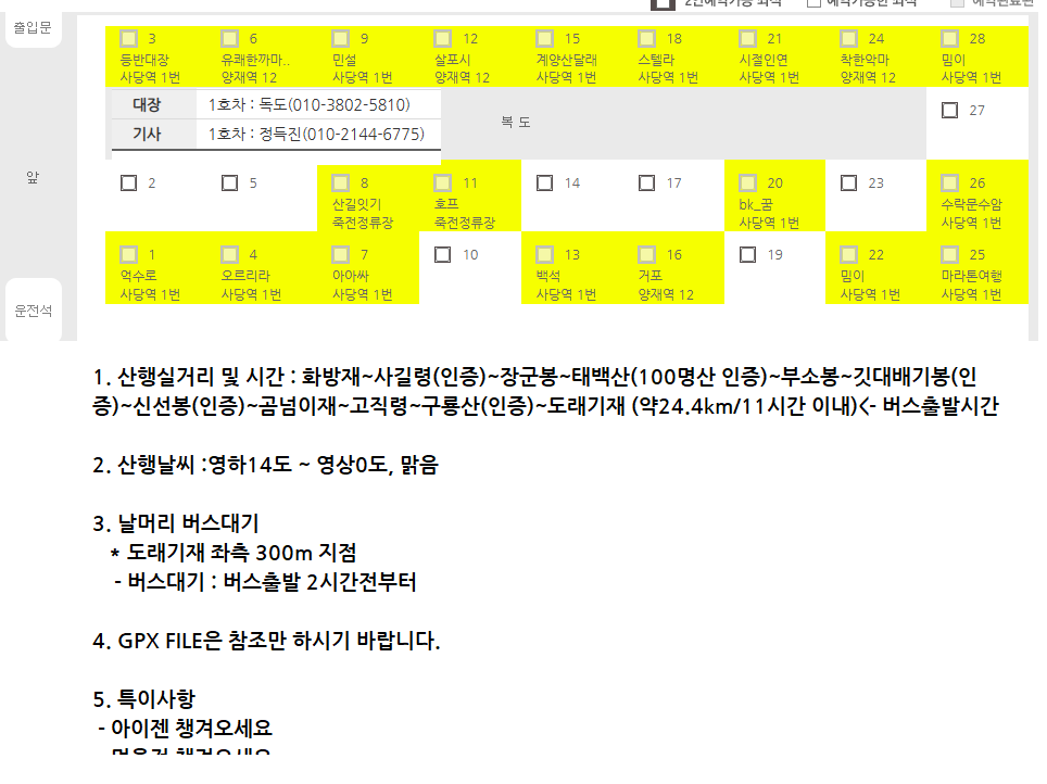 2. 버스 : 금강고속관광 31인승 경기76자7856 정득진 부장님