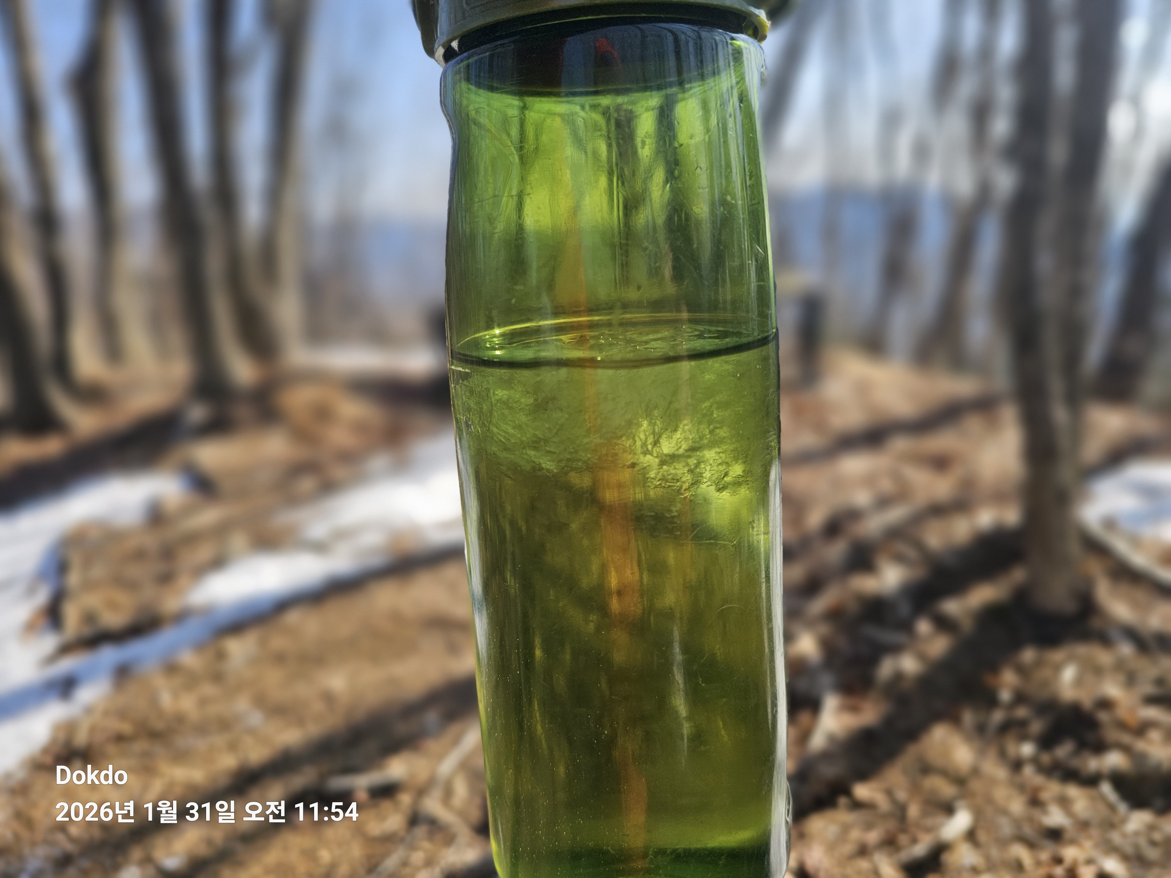 날머리에 도착하기전 물통. 요만큼 먹었네. 700ml이니 약250ml정도 먹었군.