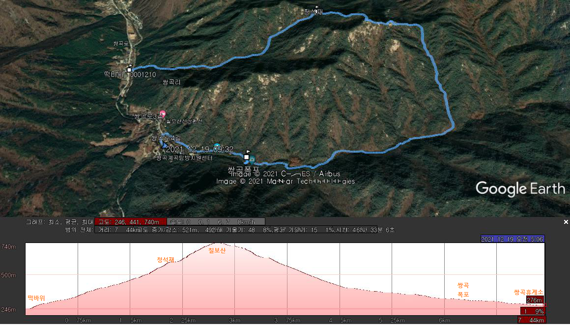 ㅇ B코스(칠보산) : 떡바위~청석재~칠보산 정상(인증)~활목고개~쌍곡폭포~쌍곡휴게소(약7.5km/4시간30분)