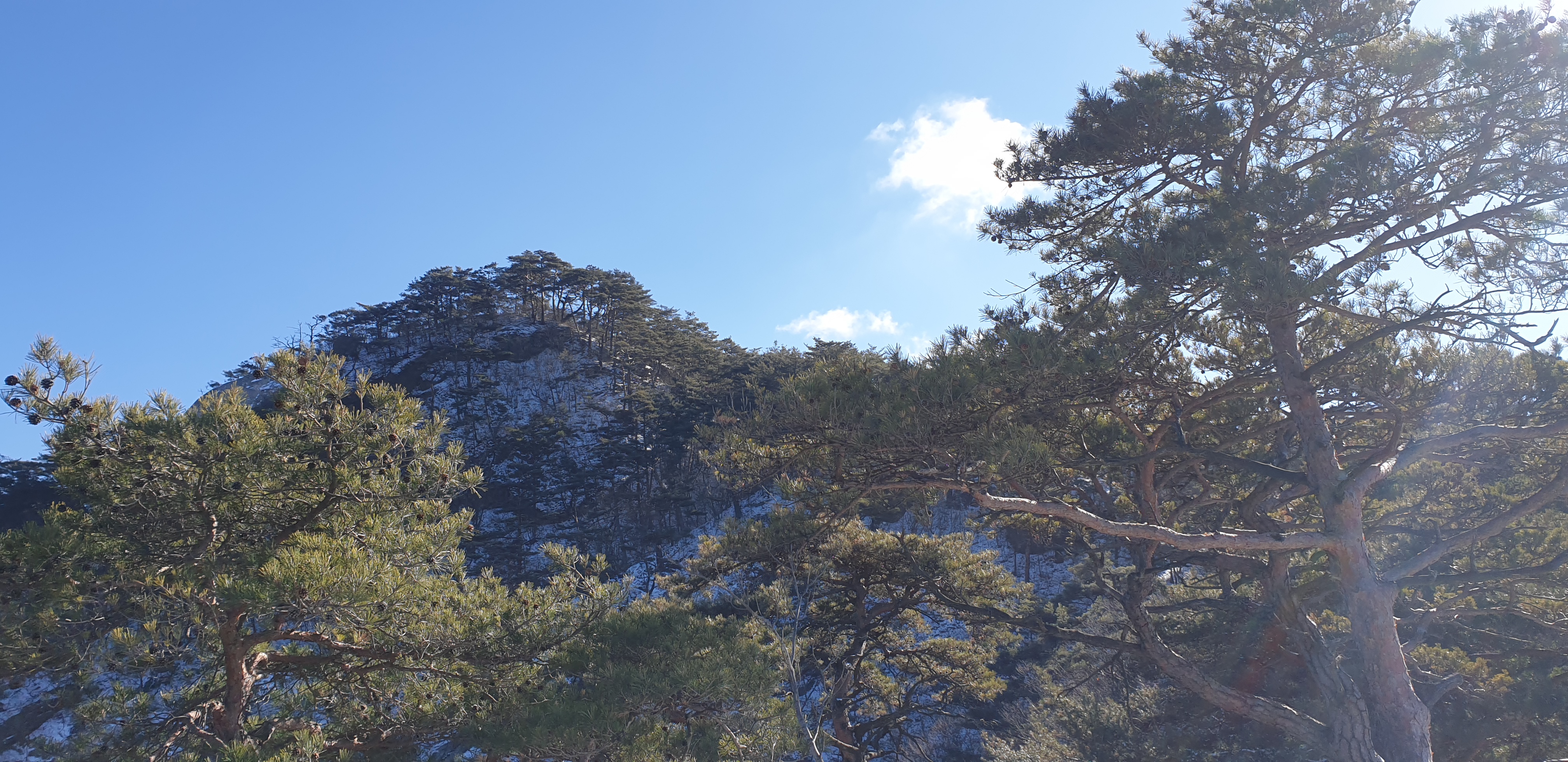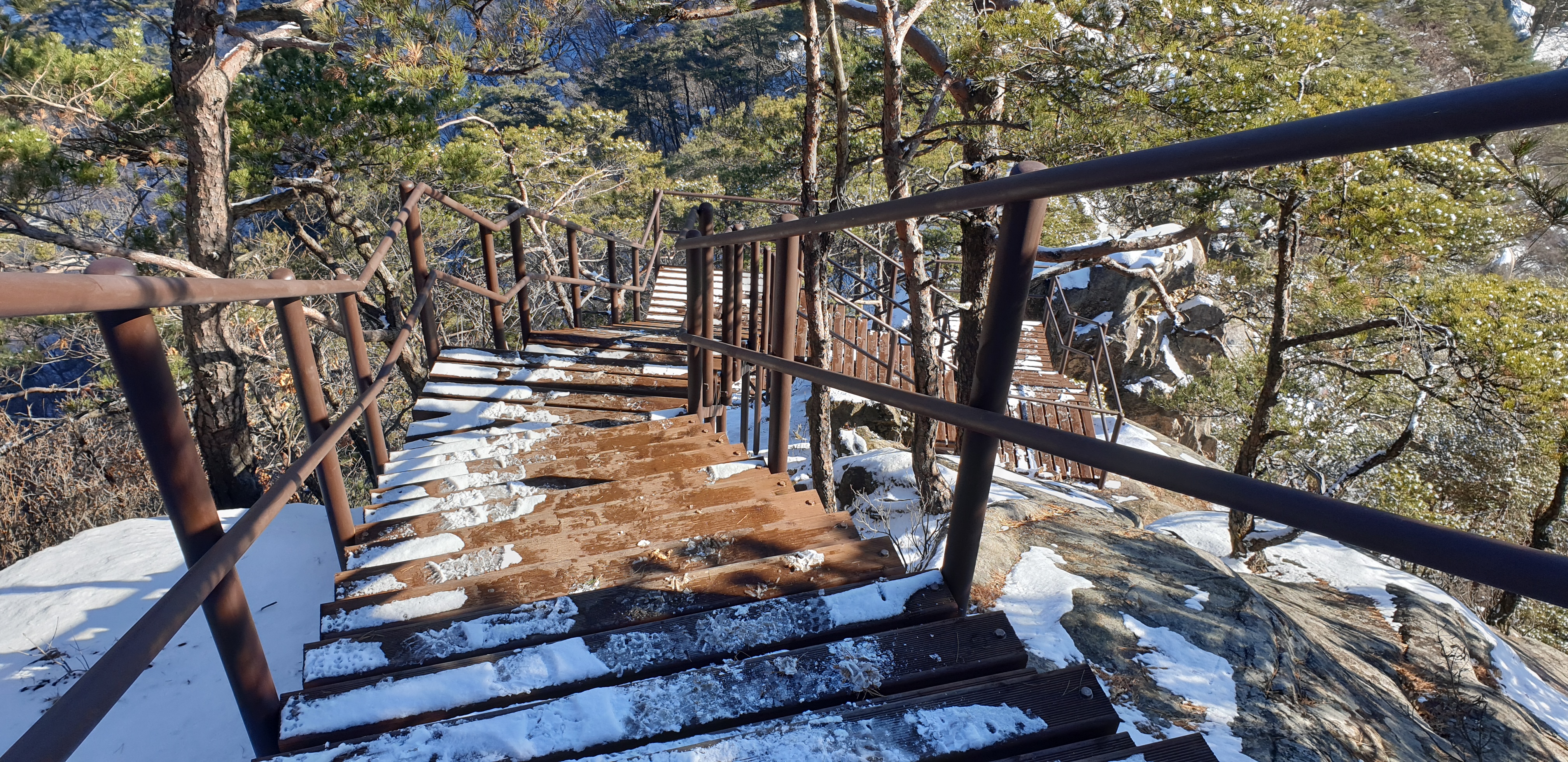 어제내린 눈으로 등로가 제법 미끄럽지만, 아이젠 없이 조심스레 걸어갑니다.