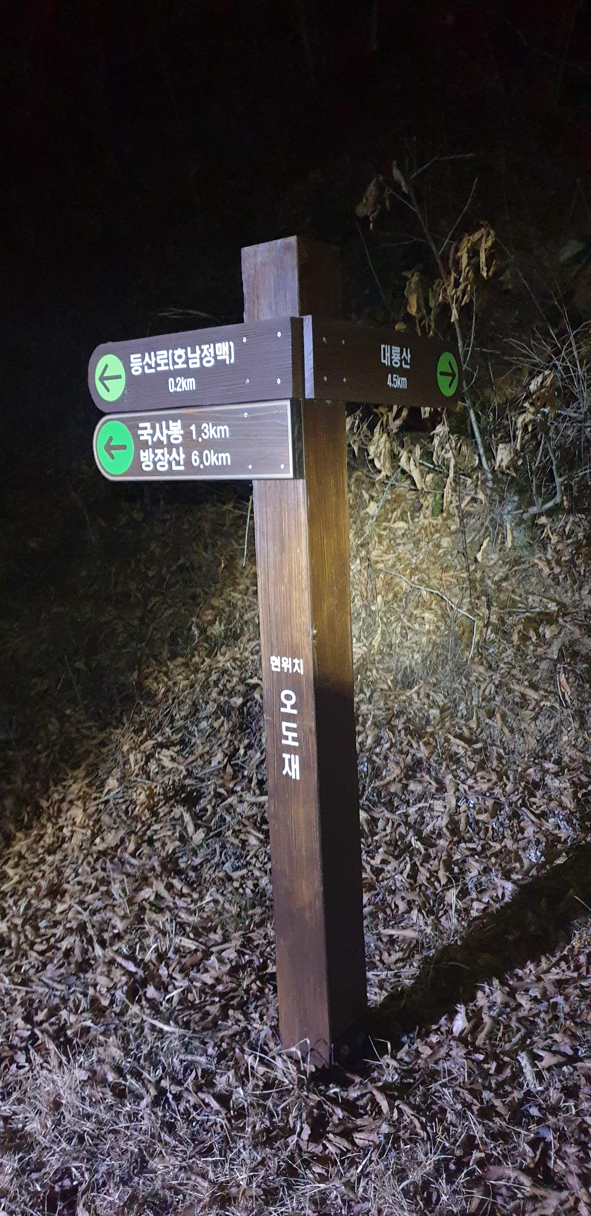 1시간밤도 되기전에 도착한 5키로 거리의 대룡산 분기점, 왕복 700미터 정도로 모두 다녀옵니다.