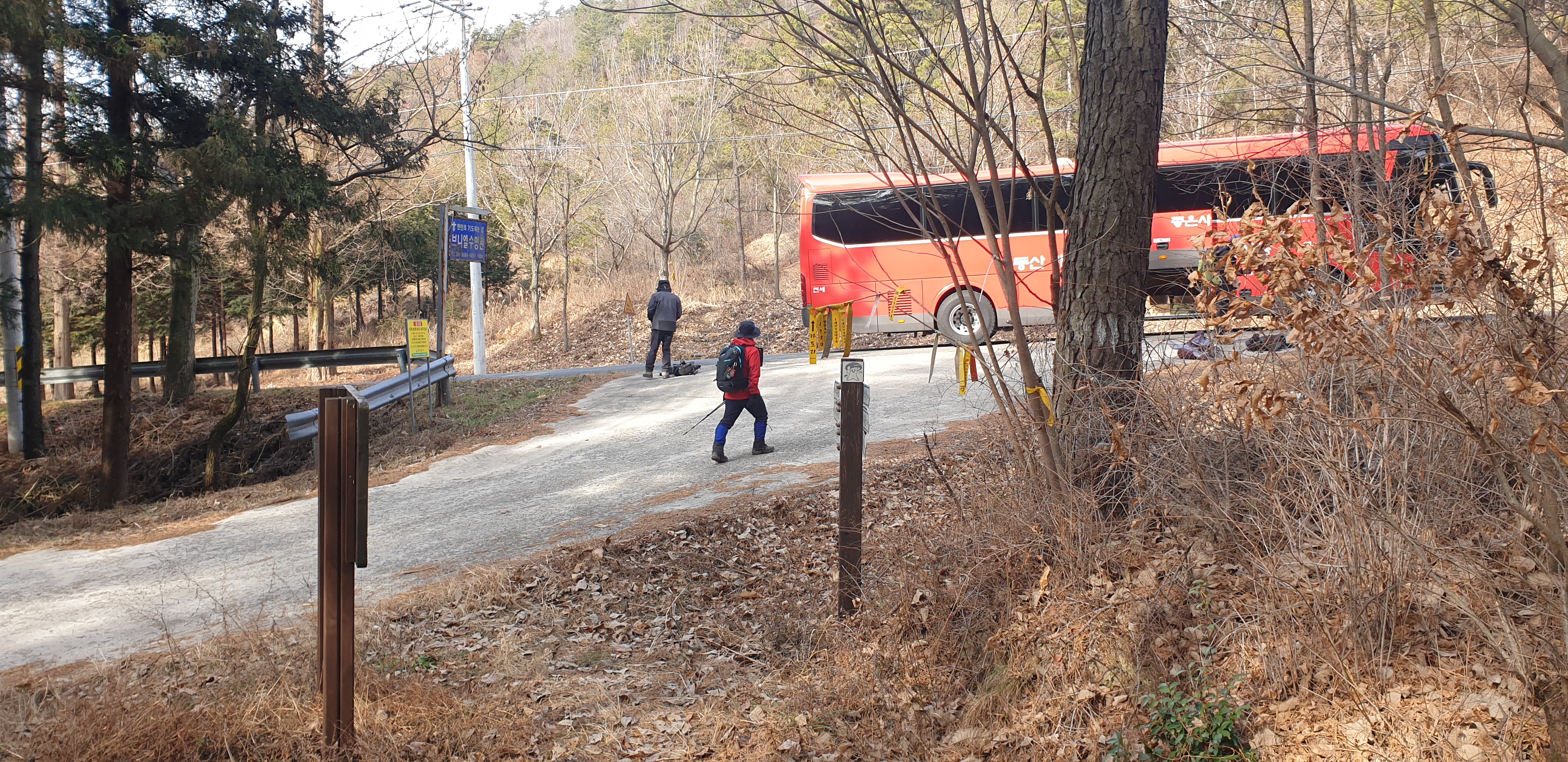 - 시목치 도로가 갓길에 버스 주차/식당 물 없음