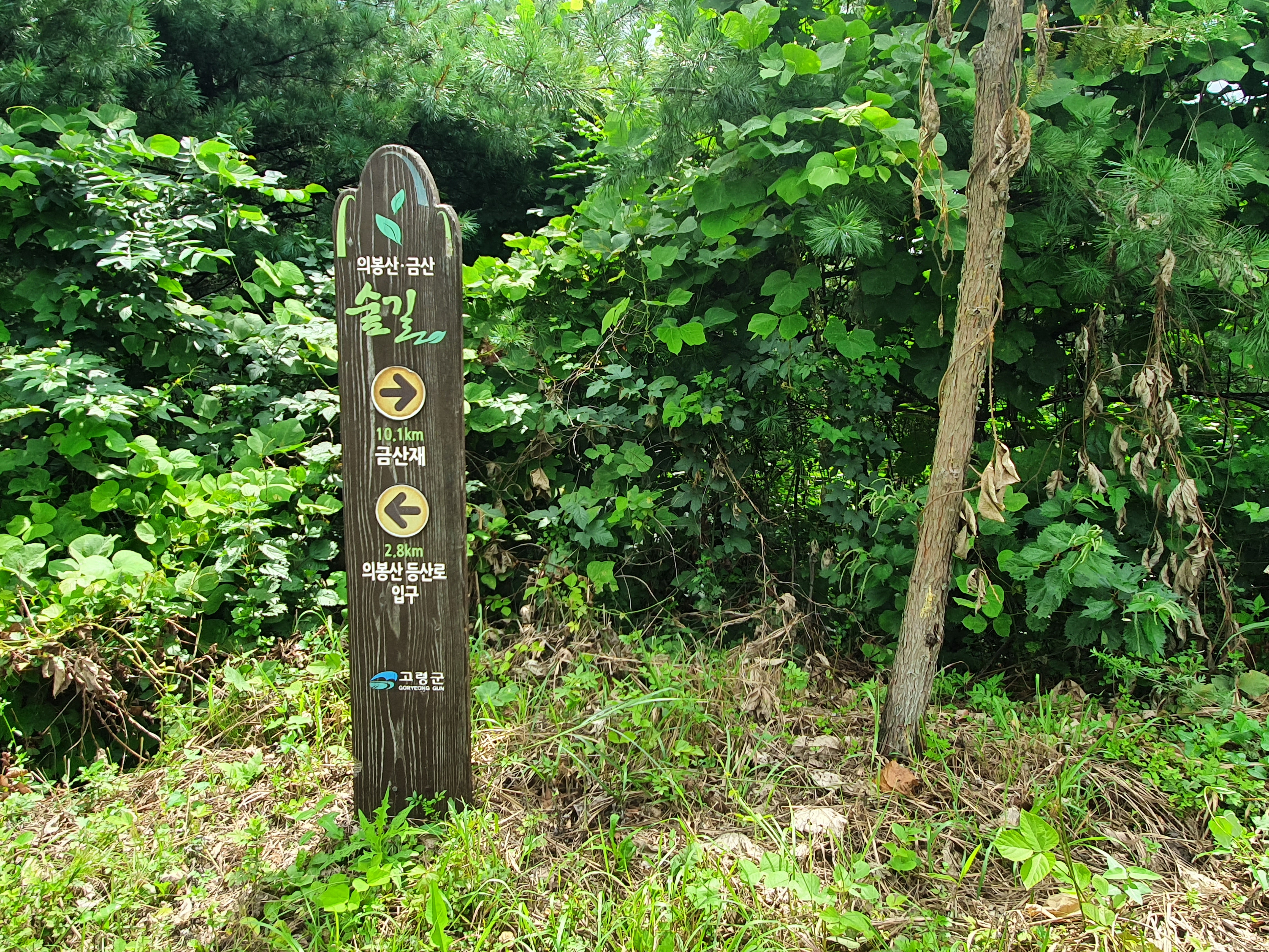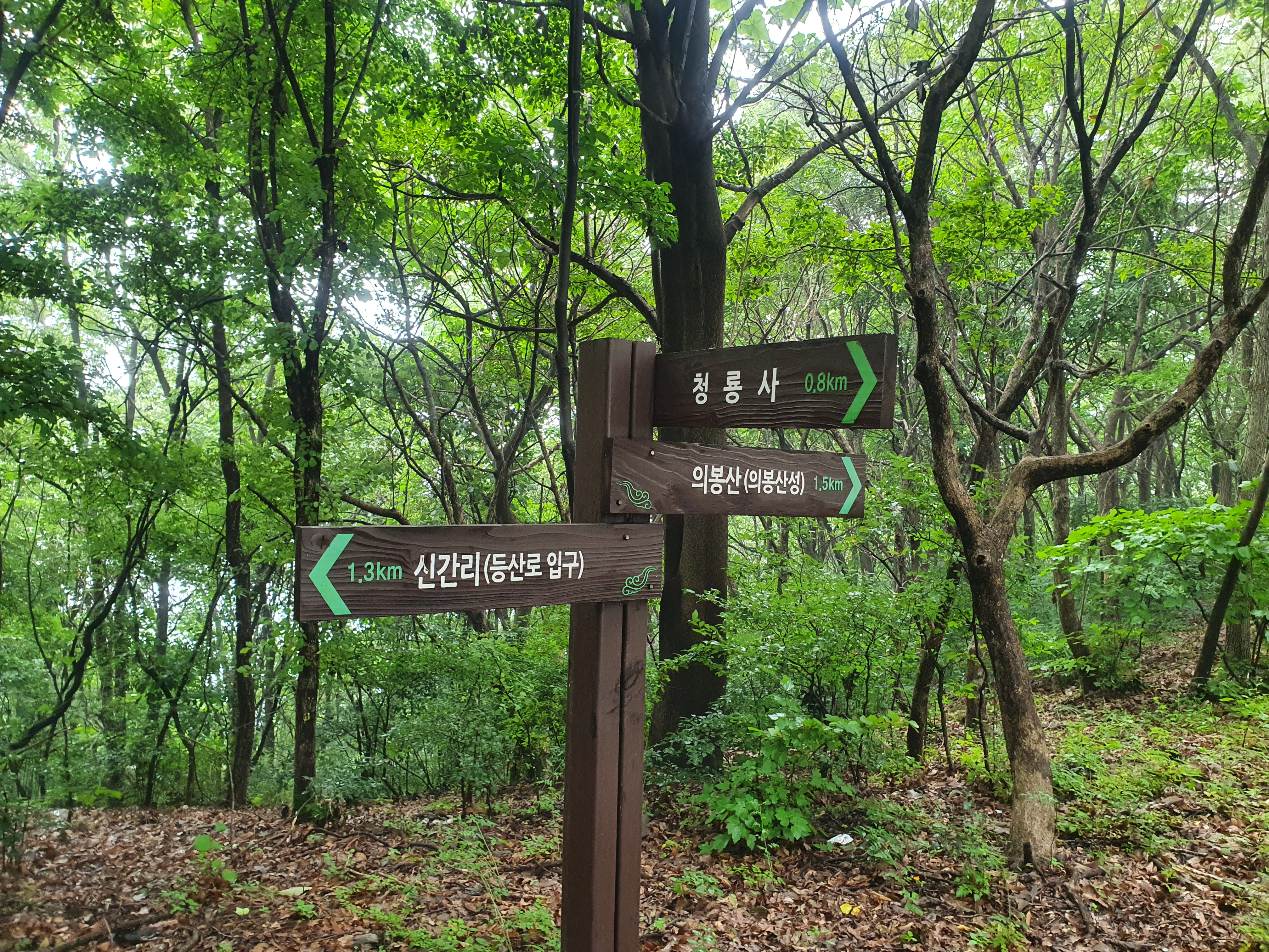 의봉산 1키로 이후부터 낮은능선2개가 포함된 임도길이 약4키로 정도 연이어져 있어 빠른 진행이 가능함.