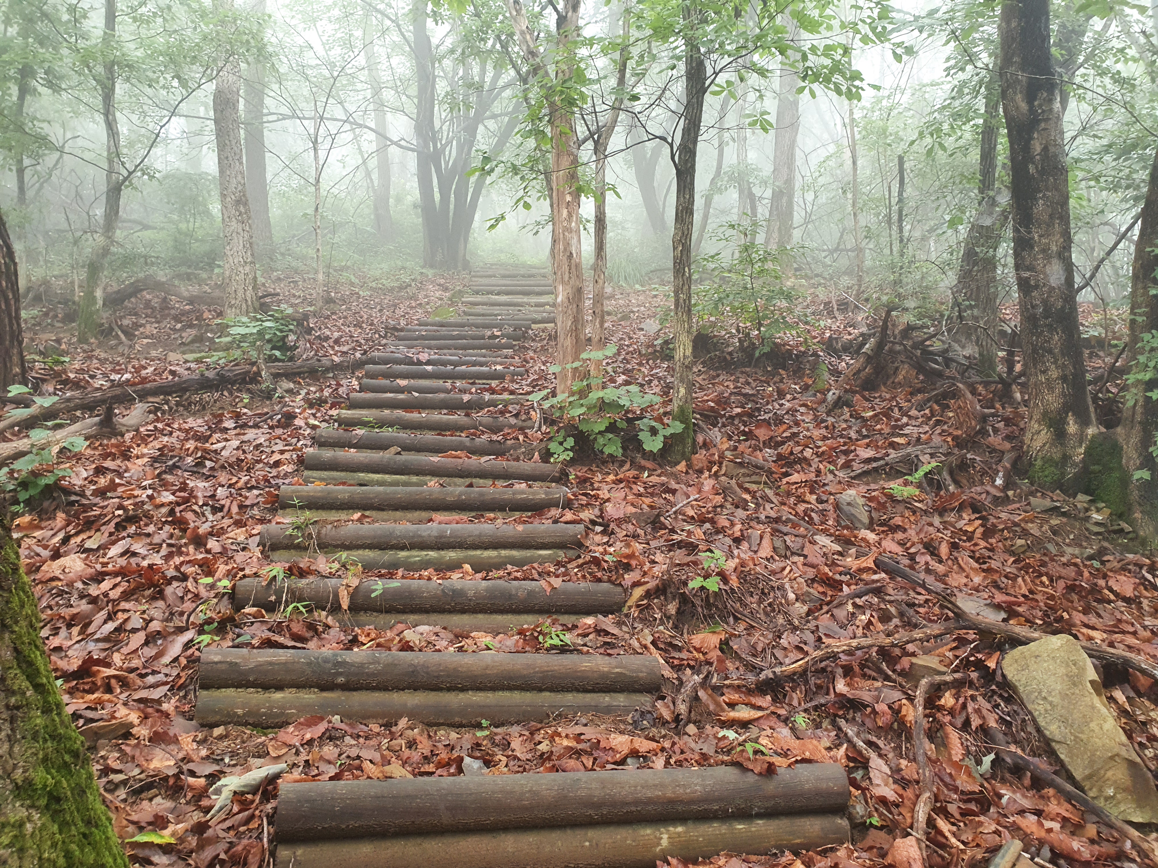 걷히고 찐한 습기를 품은 안개가 깔린 등로로 진행합니다.