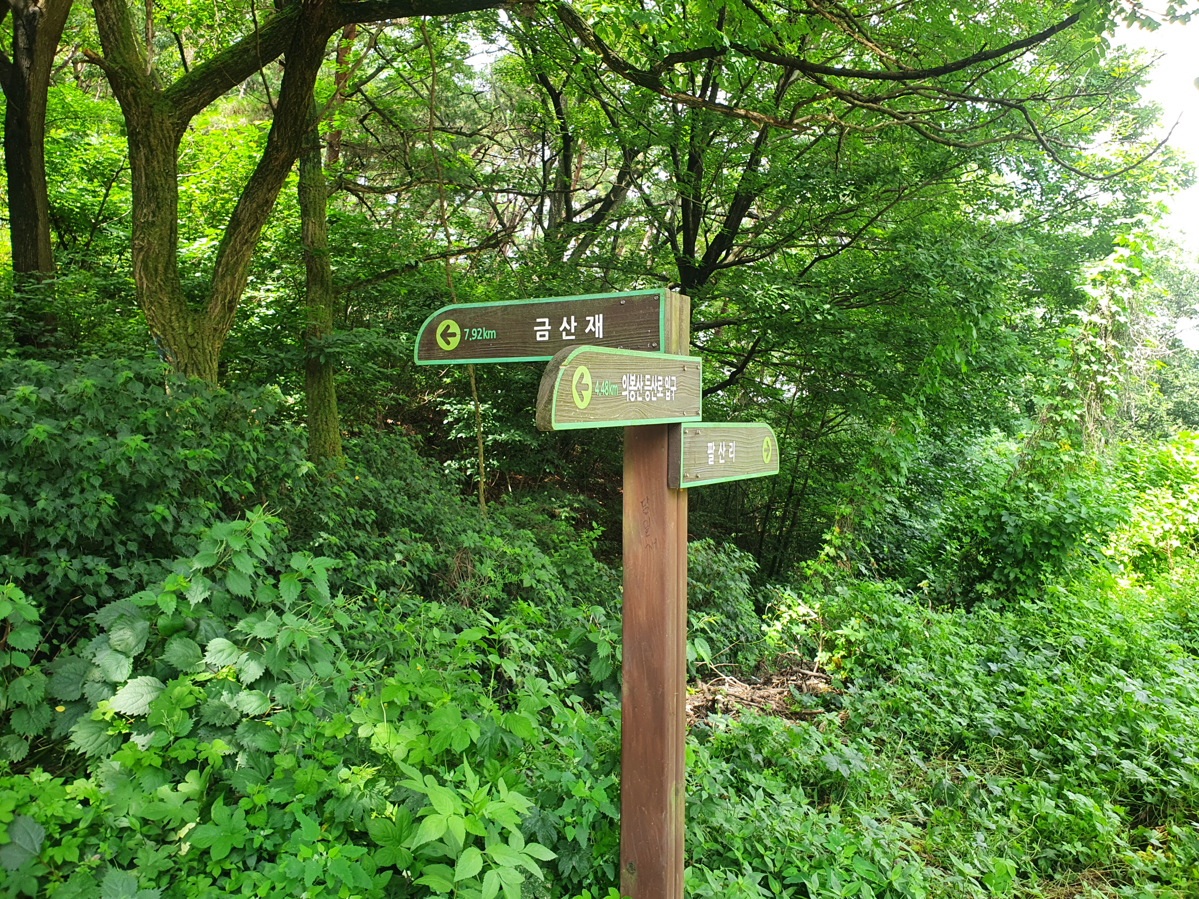 o 기산고개 1키로 이전부터는 좌측 수례길로 해서 기산리마을을 지나 광주대구간 고속도로 아래 통로로 진행.