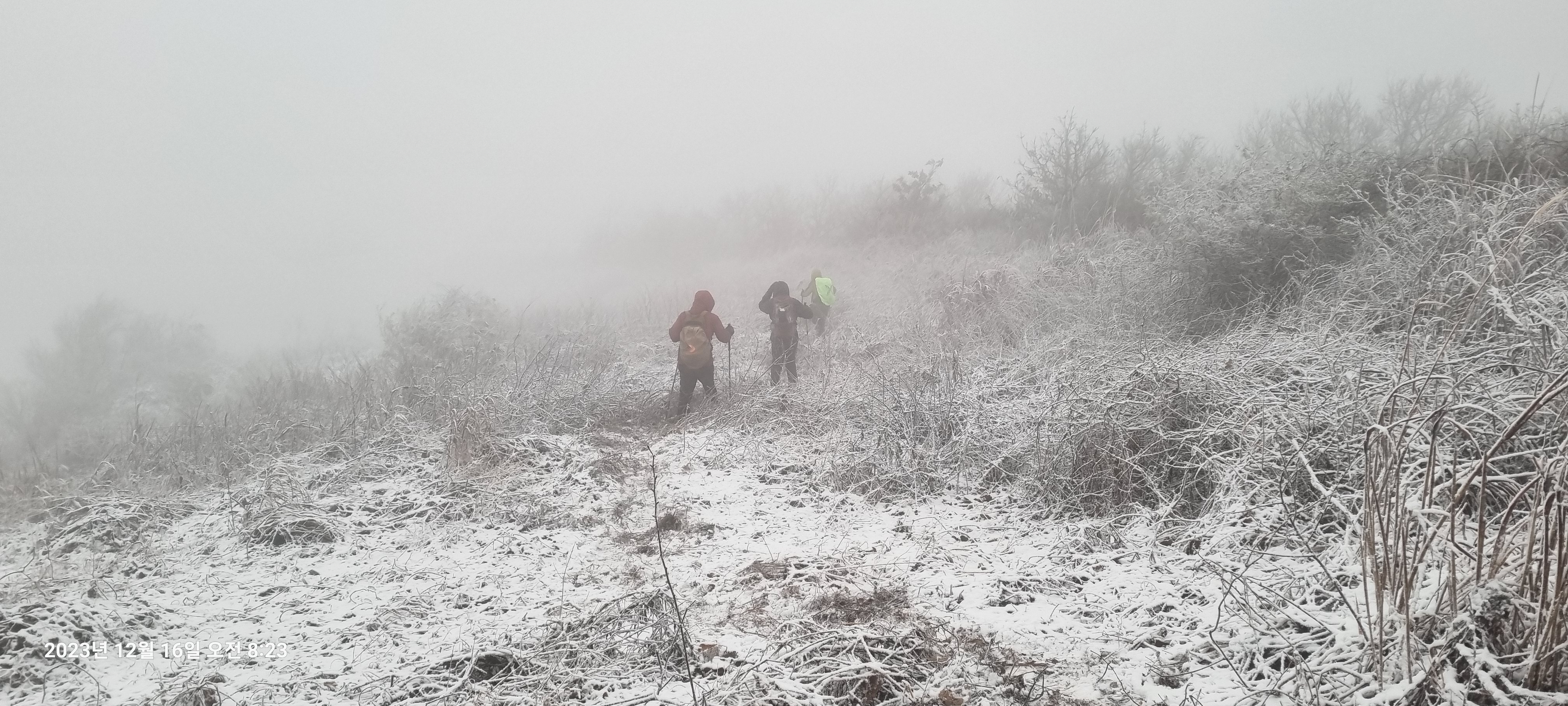 정상에서 진행이 어려울 만큼 잡풀이 자리잡고 있지만 겨울이라 다행히 크게 어려움 없이 통과가 가능합니다.