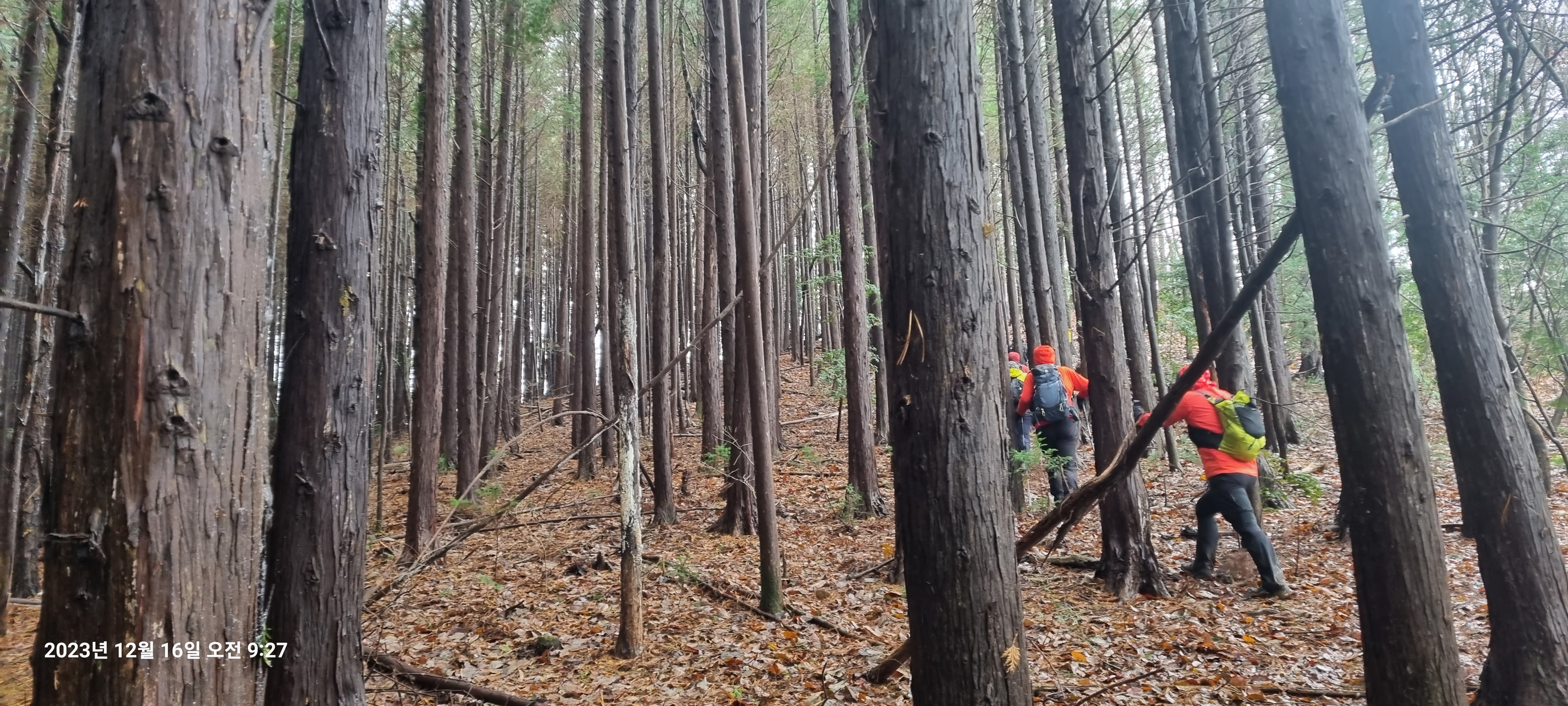 한참을 앞서간 선두는 와 임도 종착지 즈음에서 만납니다.