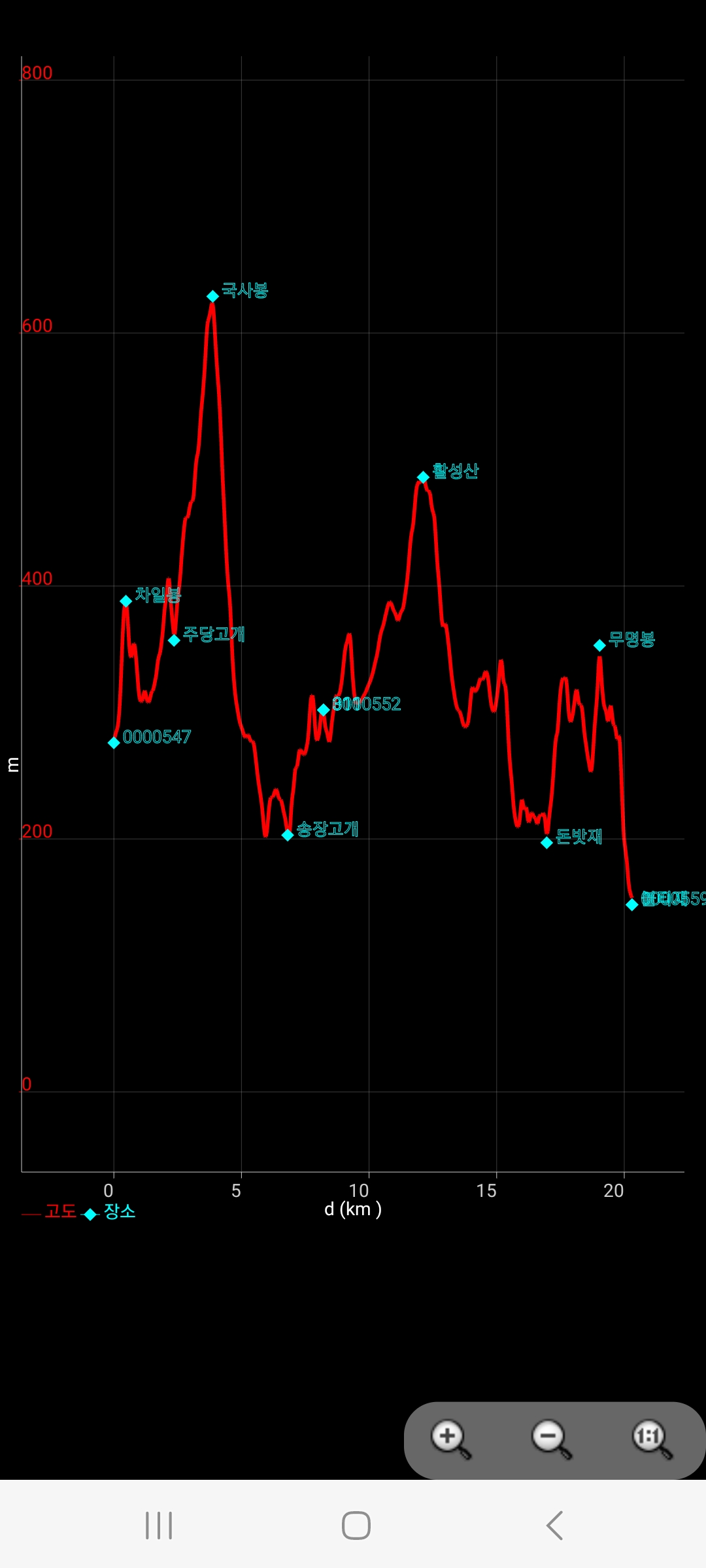 - 11시00분 : 20.2km 불티재(7시간)