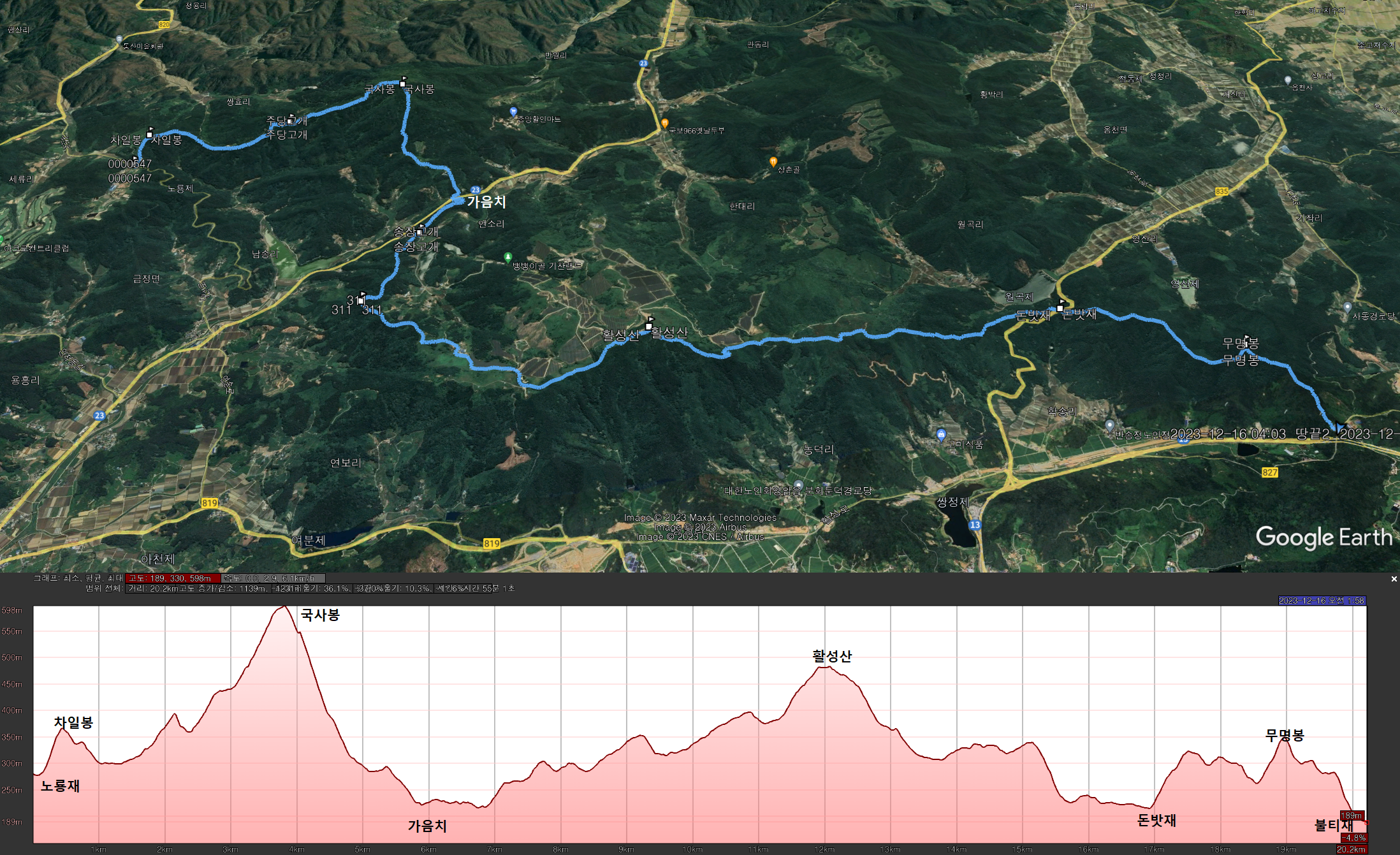 - 03시55분 : 노룡재 도착