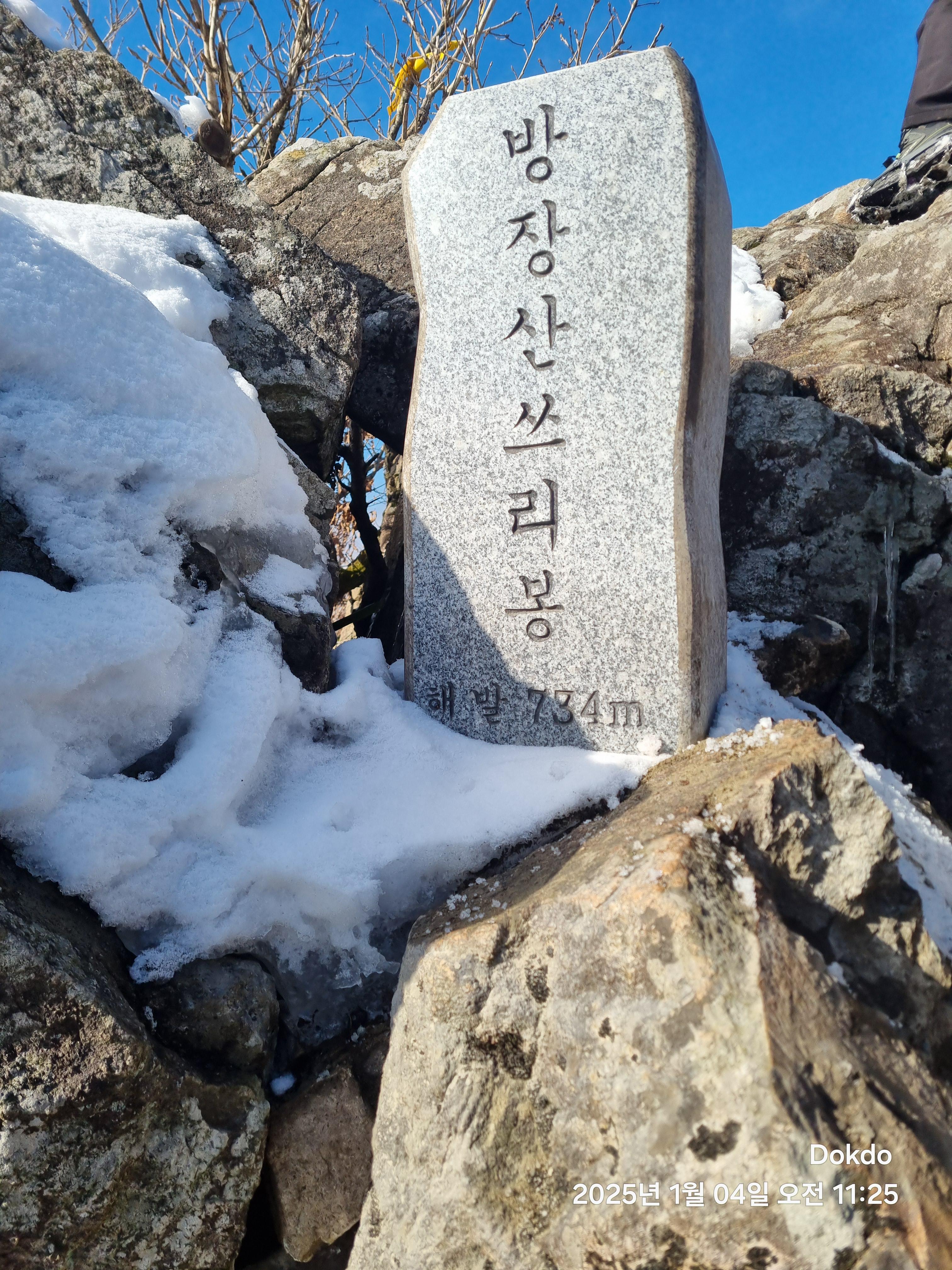 비탐길을 벗어나 눈과 얼음으로 덮힌 갓바위로 오른다.
