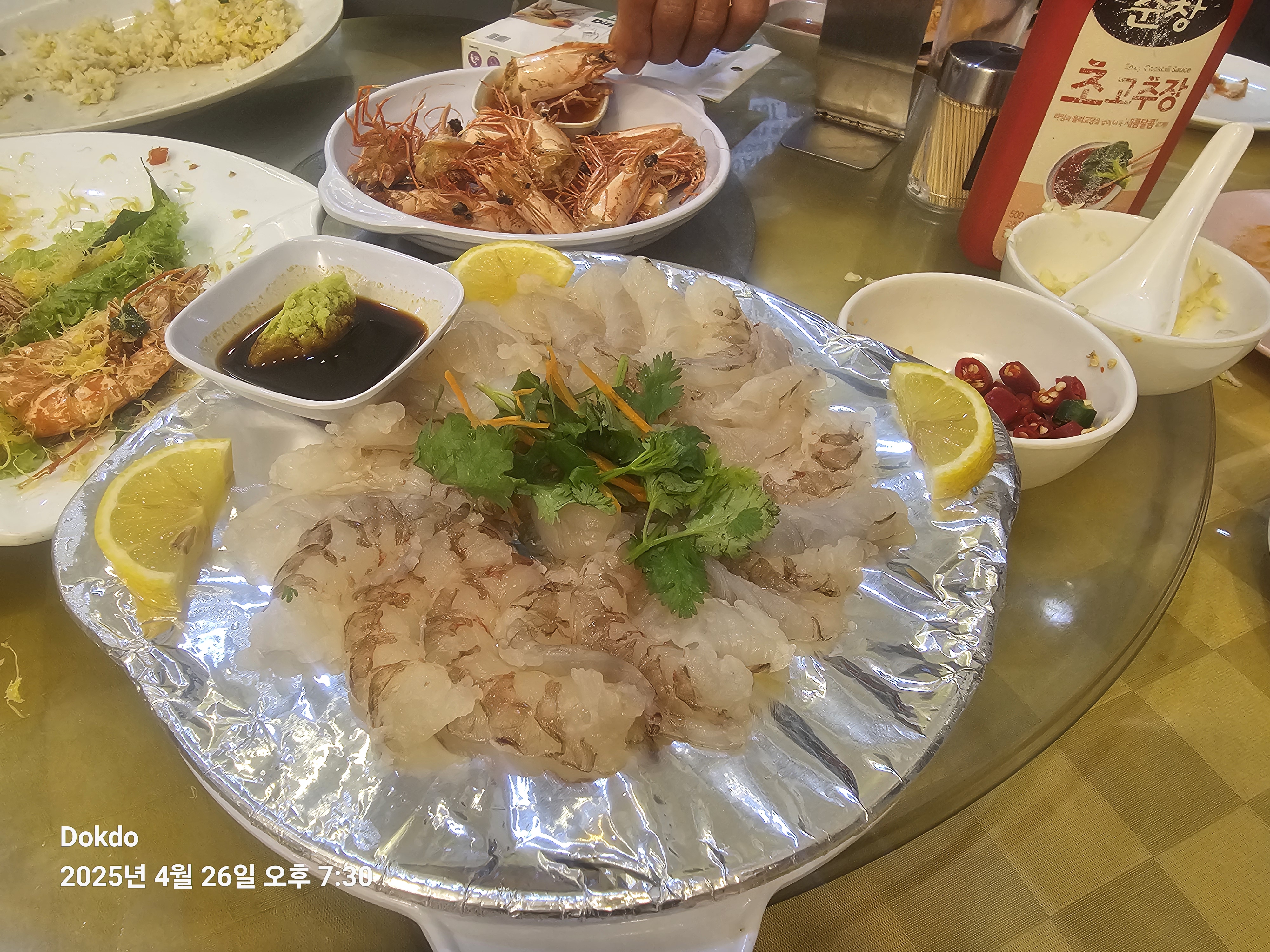 기존 먹었던 새우회가 재료가 없어 타이거새우 회를 주문했는데