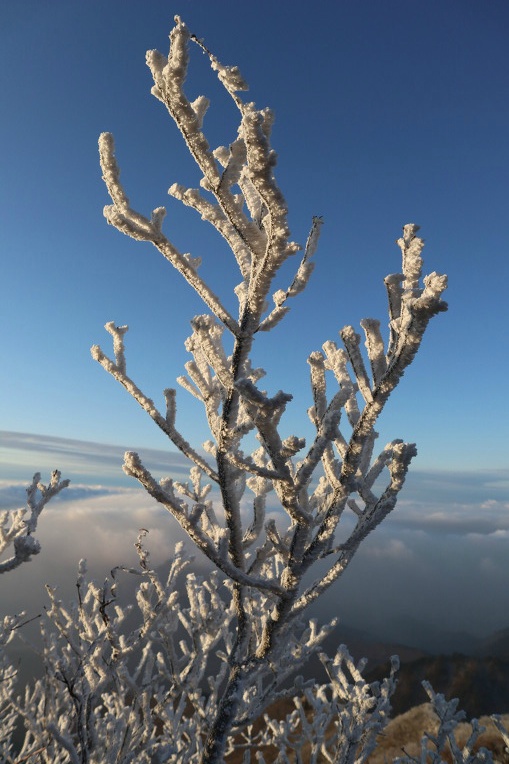 - 맑은 날씨에 눈도 없어 별 볼일 없는 종주가 되겠구나 했지만, 대기중의 습기가 얼어 상고대를 만들고 그 언 습기가 등로에 떨어져 상고대길이 생기고, 남덕유에서는 운무까지 깔려 모처럼의 금년 멋진 겨울 산행을 하게 되었네요. 산은 항상 예기치 못한 것을 보여 모두에게 베풀어 주는군요.