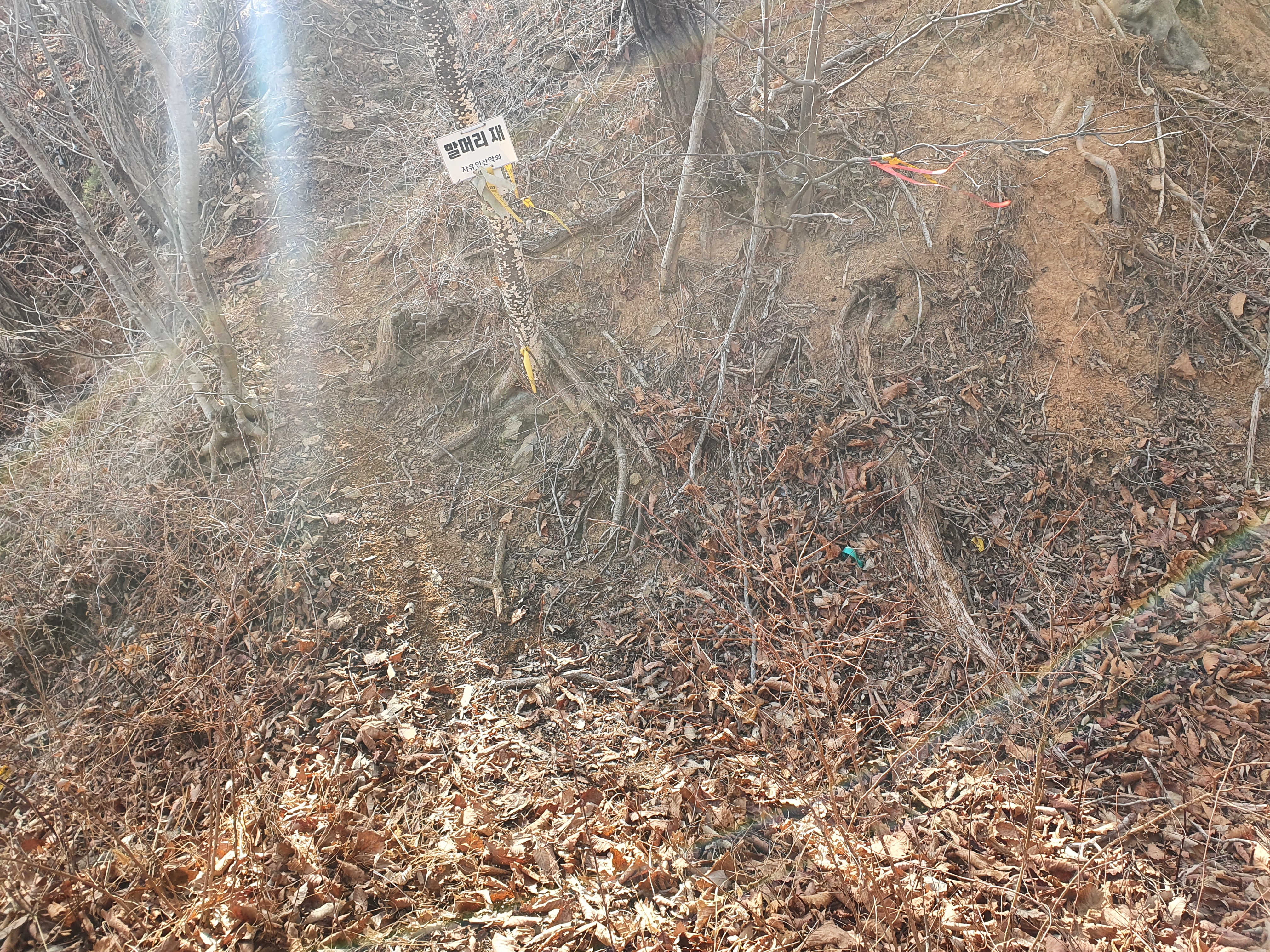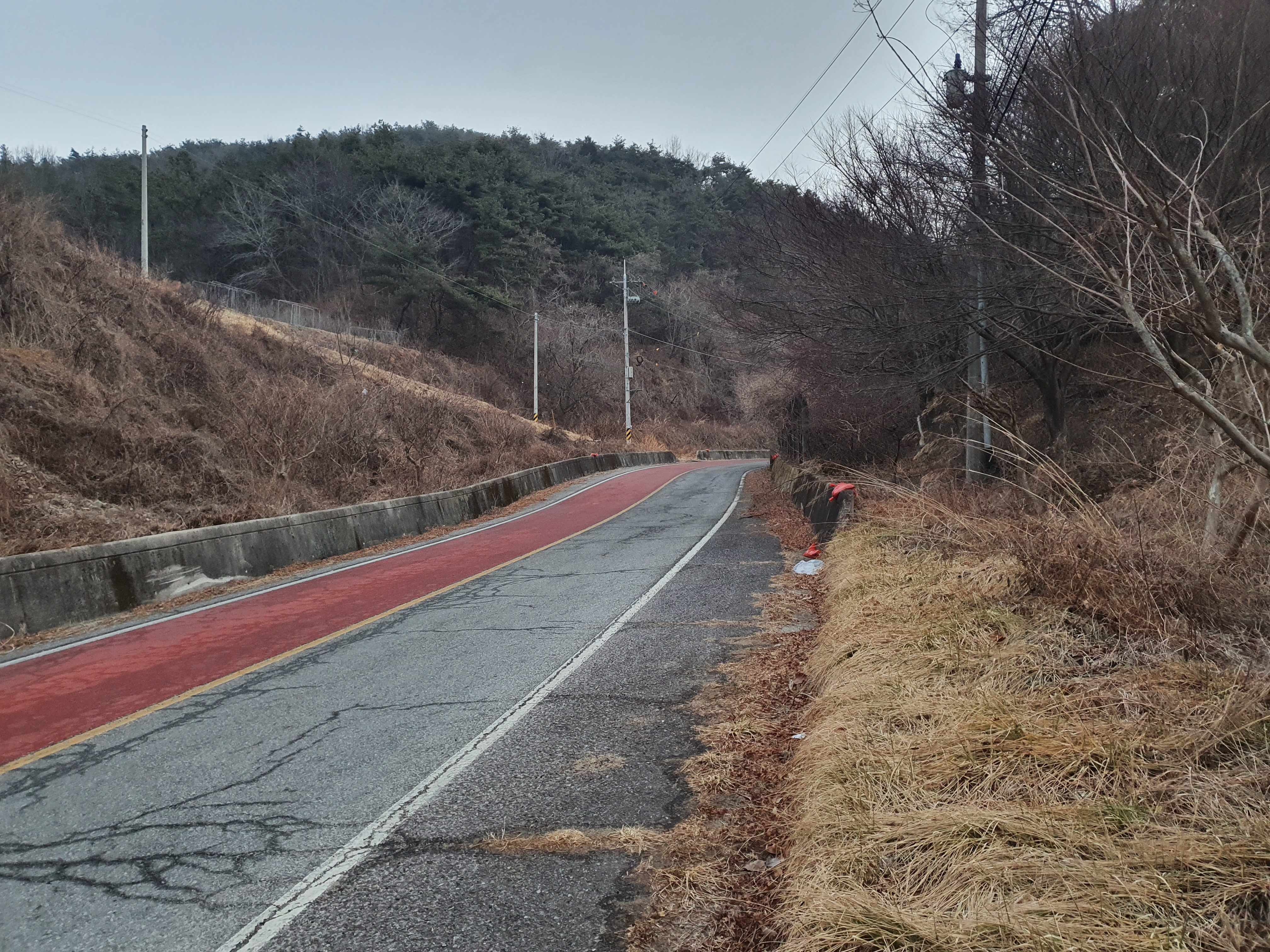 능선을 도로가 깍아 먹어 절벽이 되어 잘려버린 맥길이라