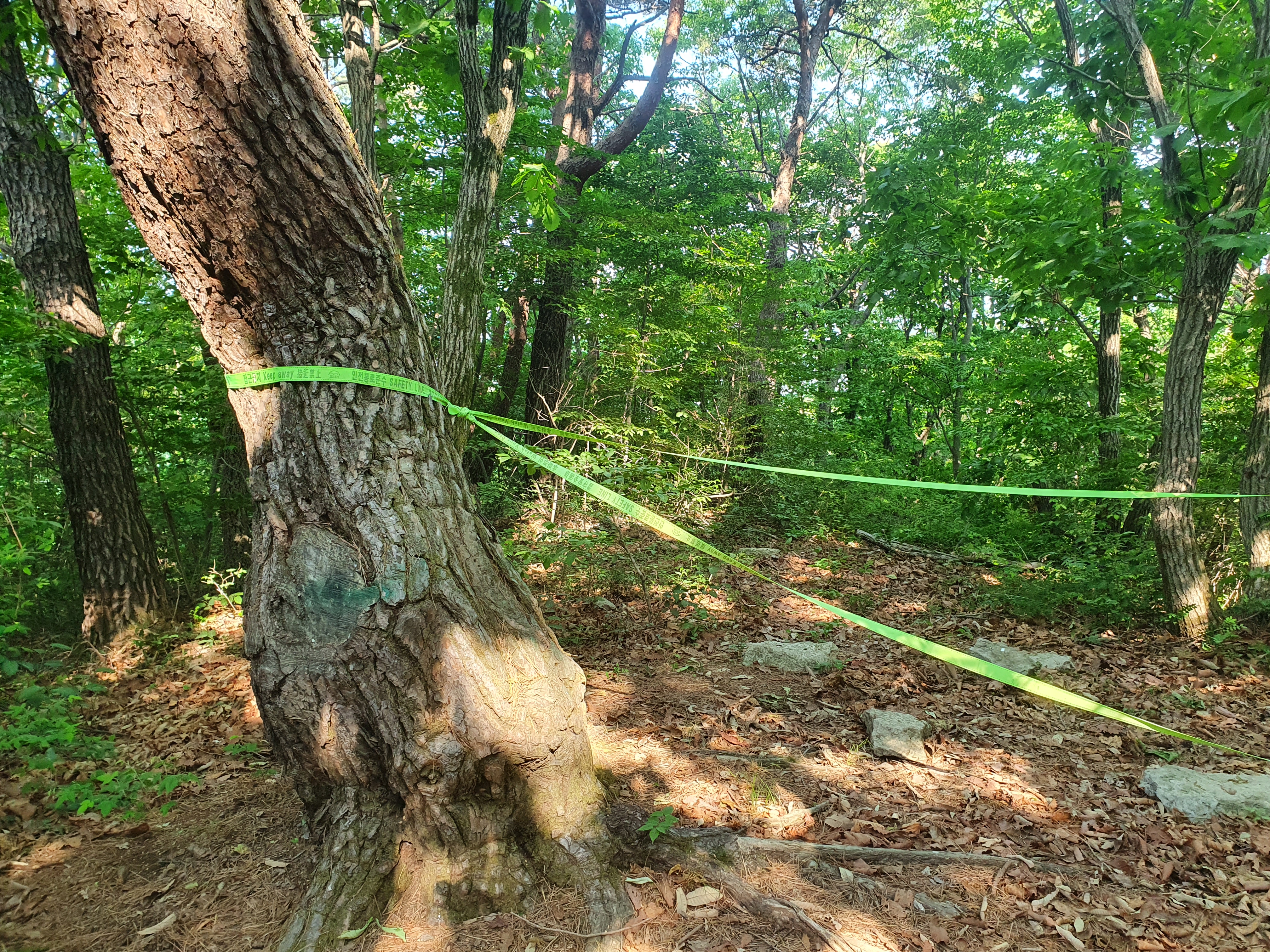 삼거리가 나오고 좌측을 통과하지 못하게 끈으로 막아놓아 자연스레 우측으로 진행하니,