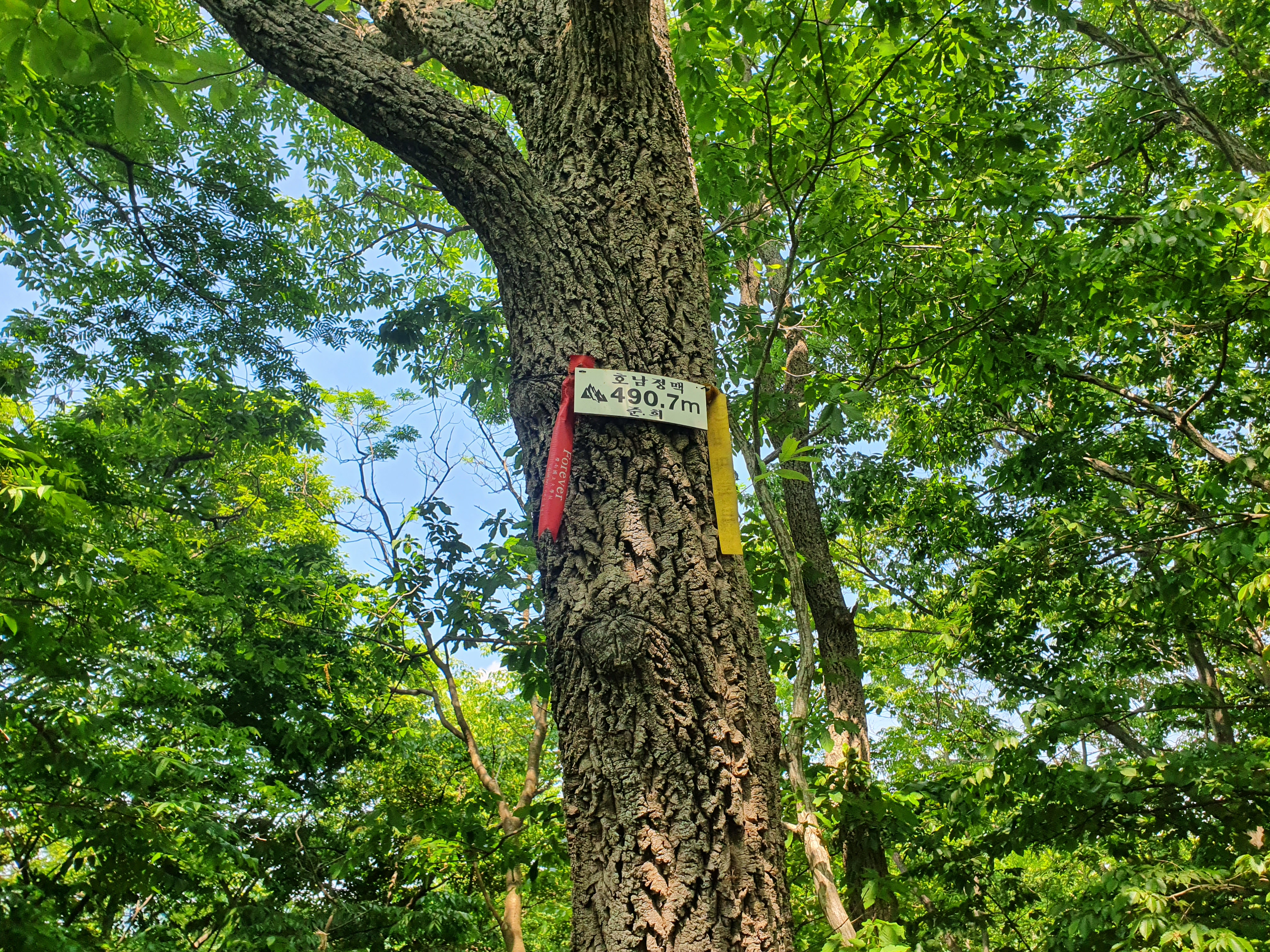 마지막 봉우리인 490.7봉 이전(임도를 만나기 전) 등로가 가시나무와 잡목으로 진행이 매우 어렵습니다.