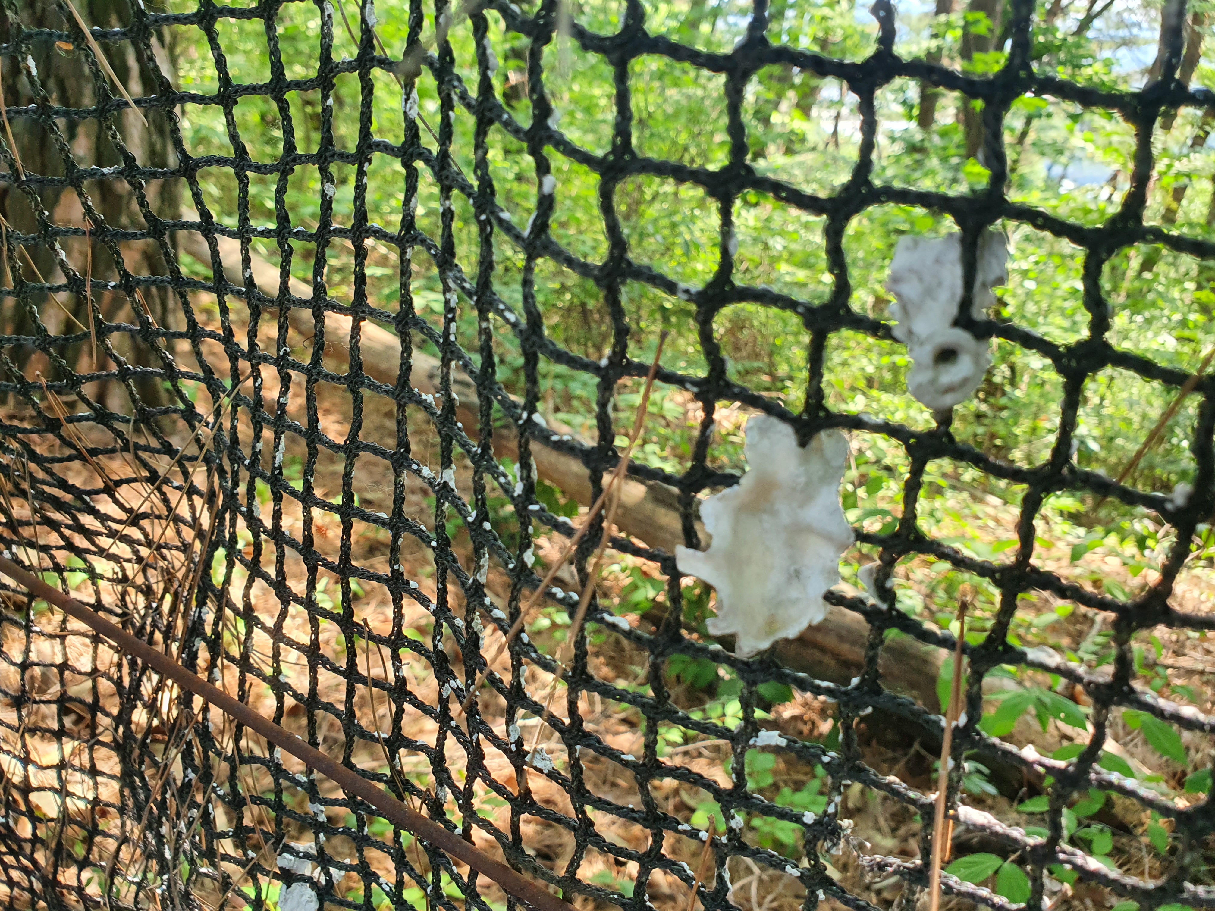 오정자재가는 능선길 우측으로 굴양식에 사용한 그물을 쳐 놓았는데,