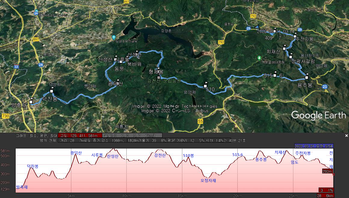 - 12시07분 : 22.0km 용추봉
