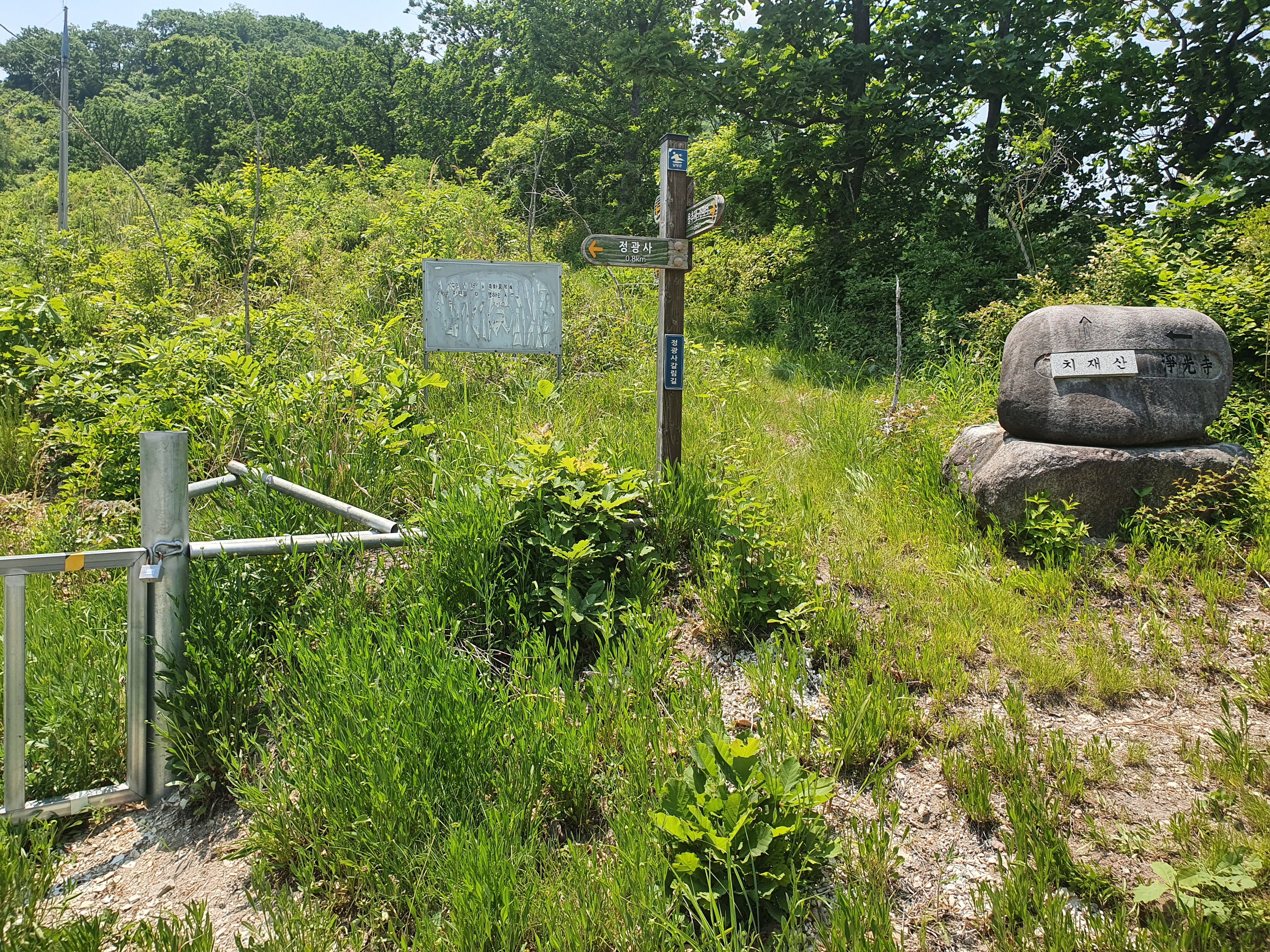 치재산 내려서면 임도를 만나고, 임도를 따라 좌측으로 진행하면 천치재 근처까지 쉽게 진행할 수 있음