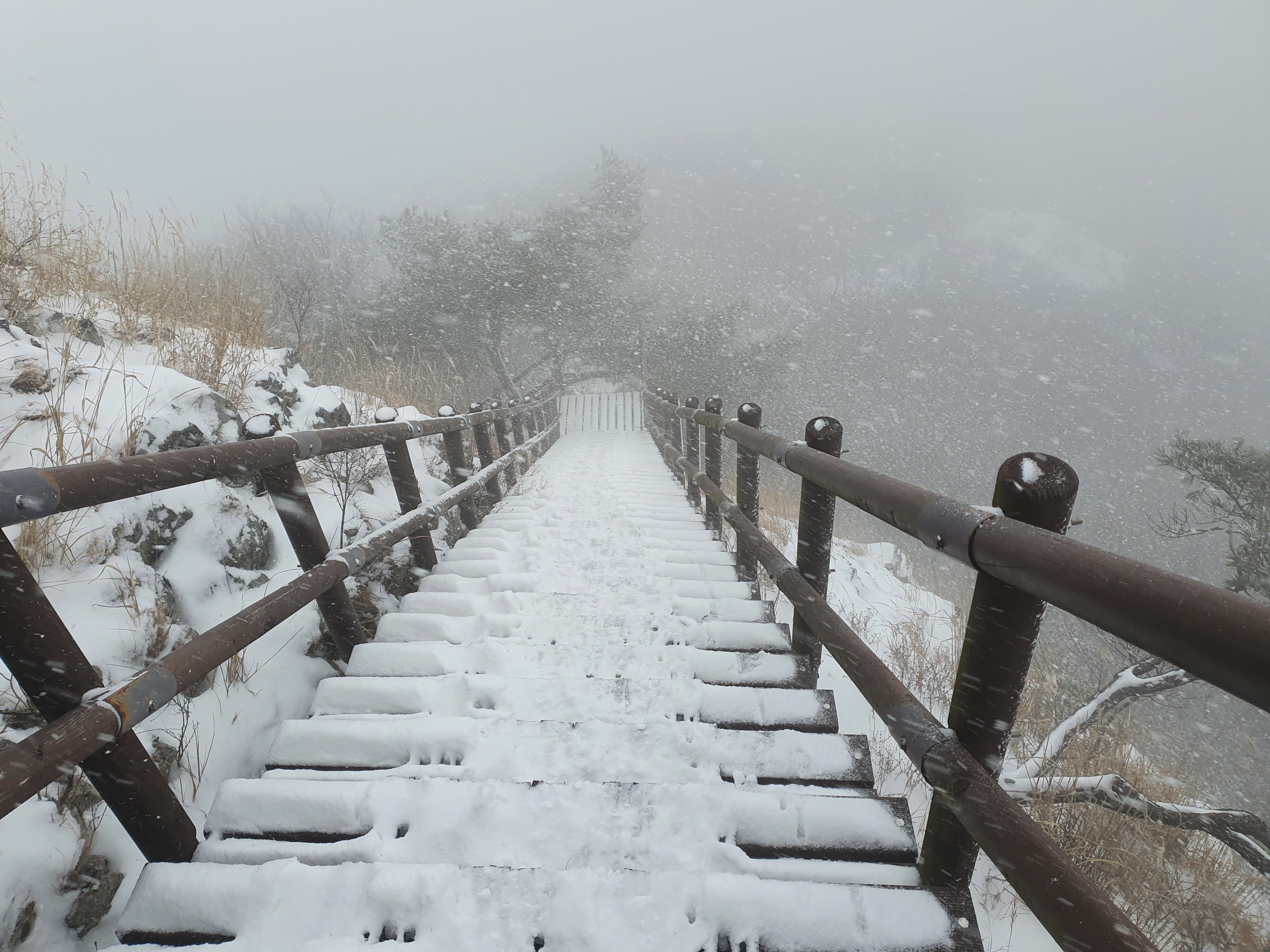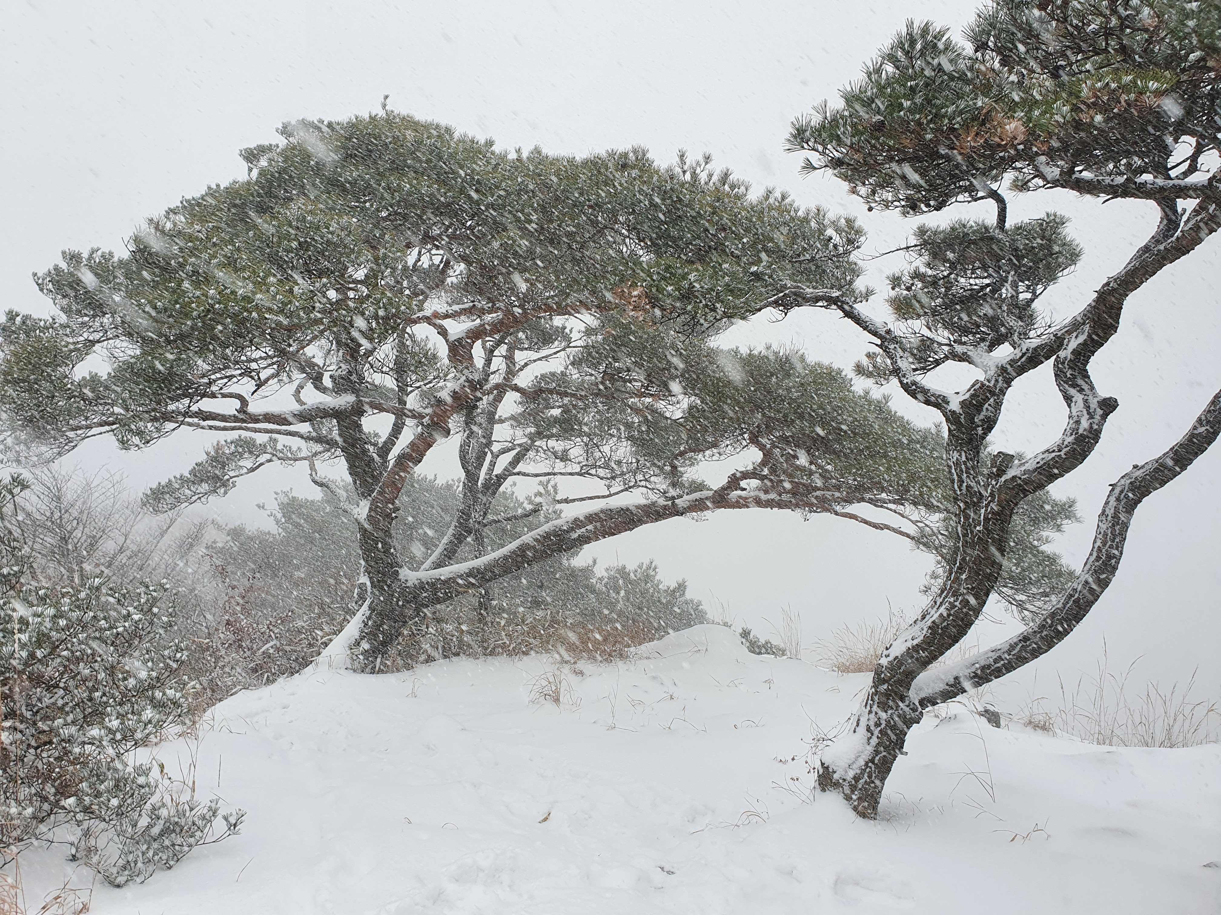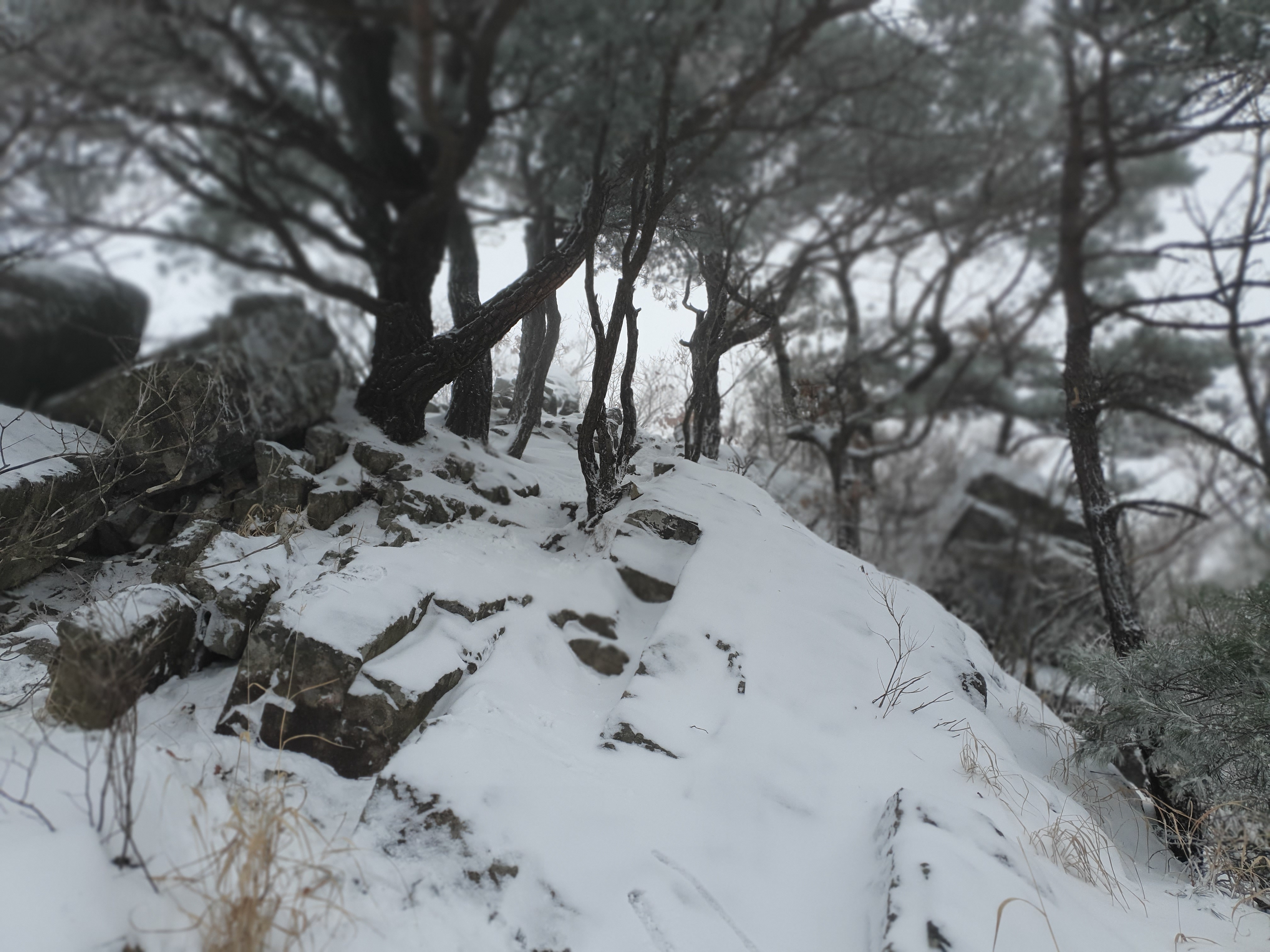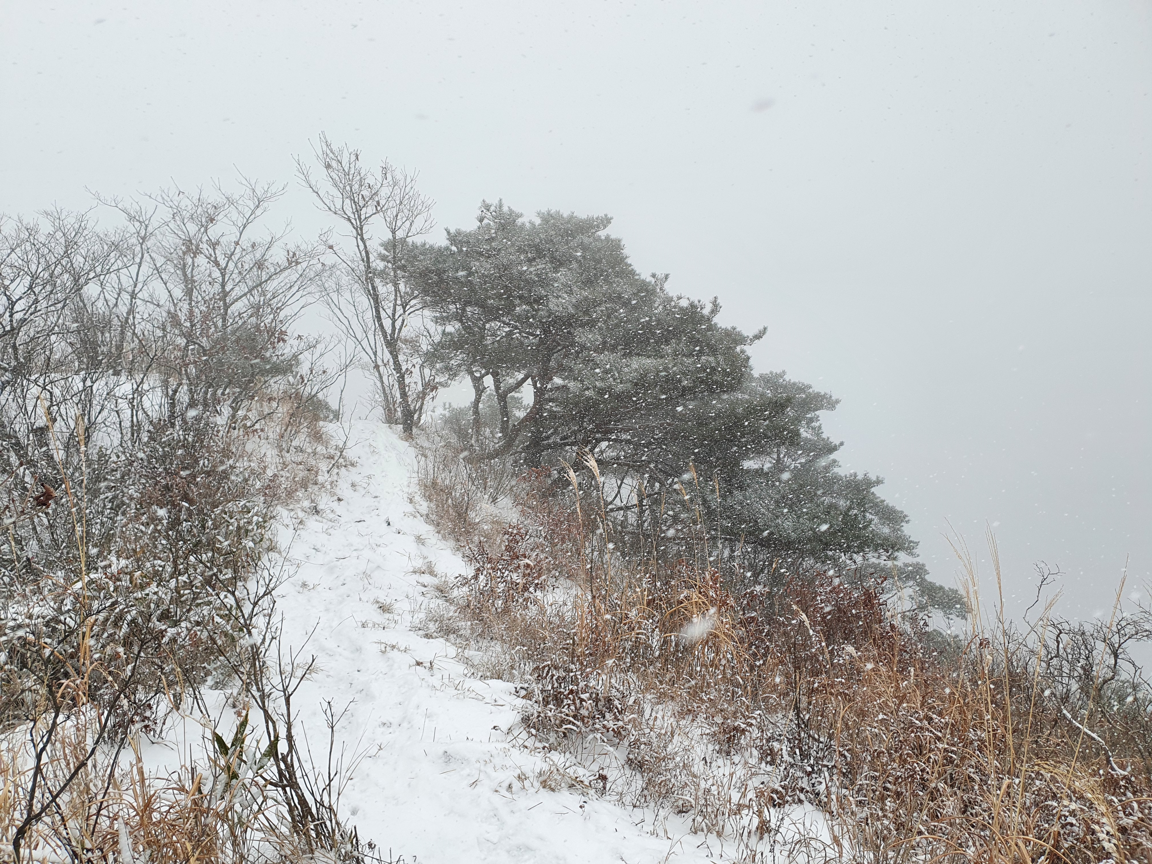 연석산 가는 길에 눈발이 쎄어진다.