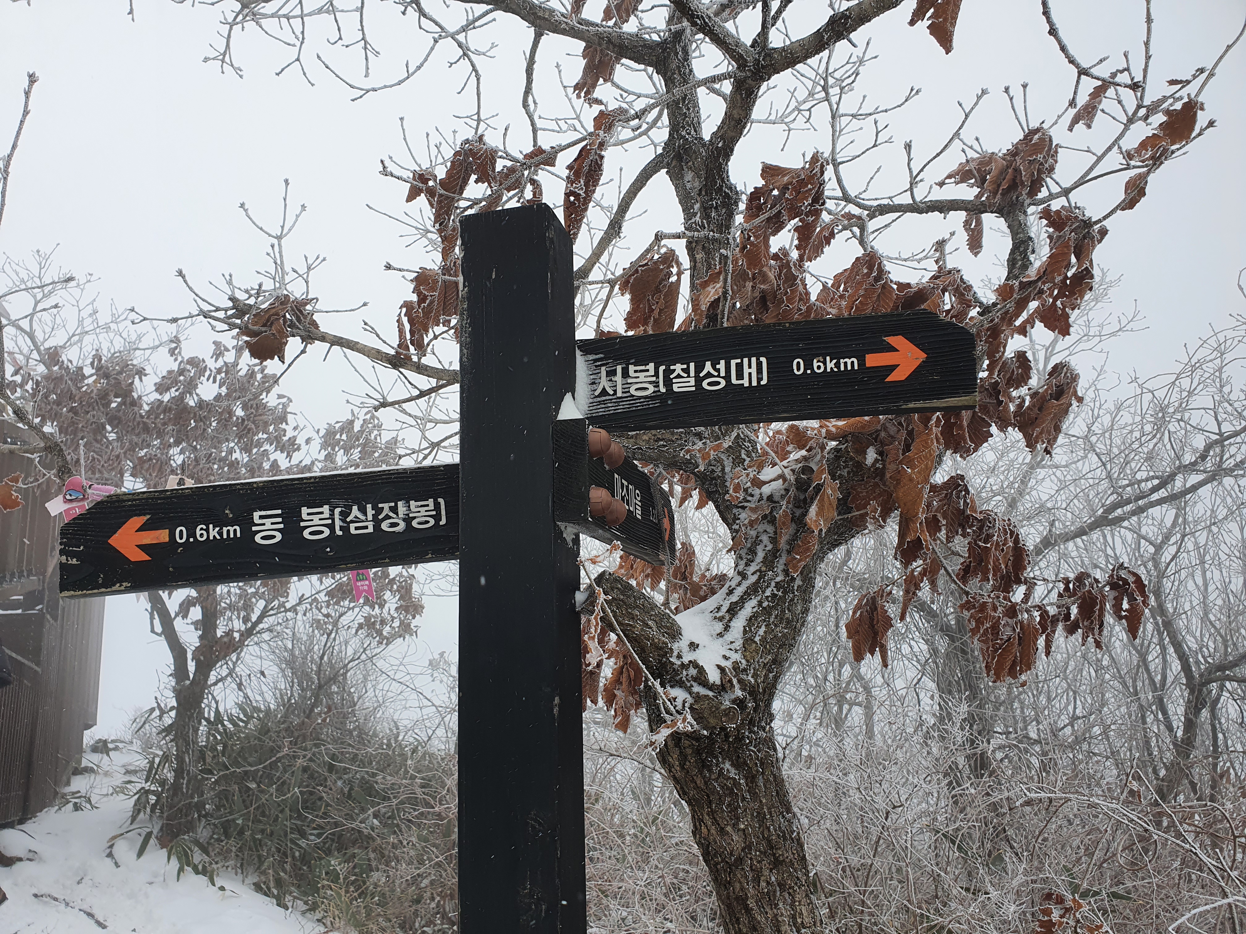눈길에 너무 가파른 관계로 우회해서 서봉 삼거리로 돌아 서봉으로 올라선다.