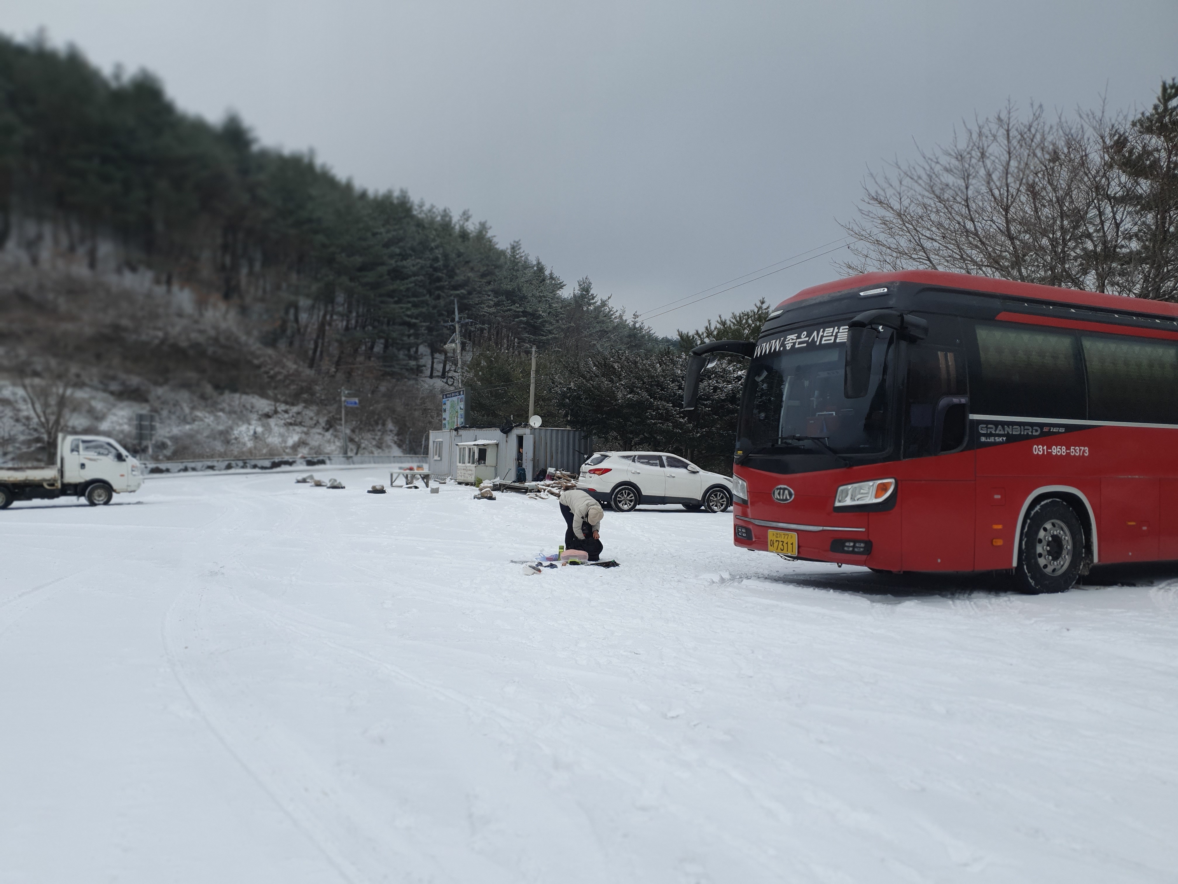 그냥 넓은 주차장에 눈을 치우고 가져온 것으로 마무리...