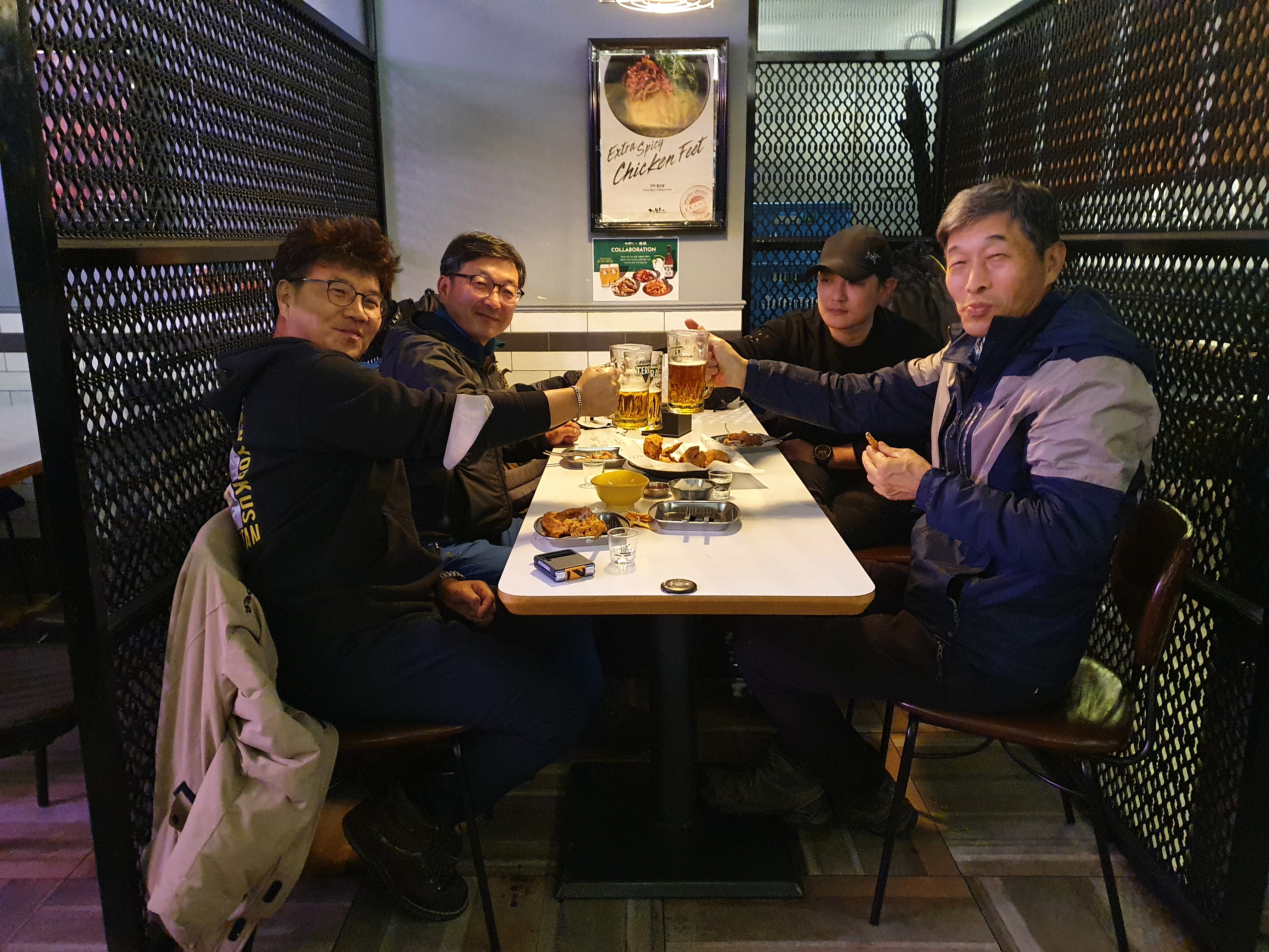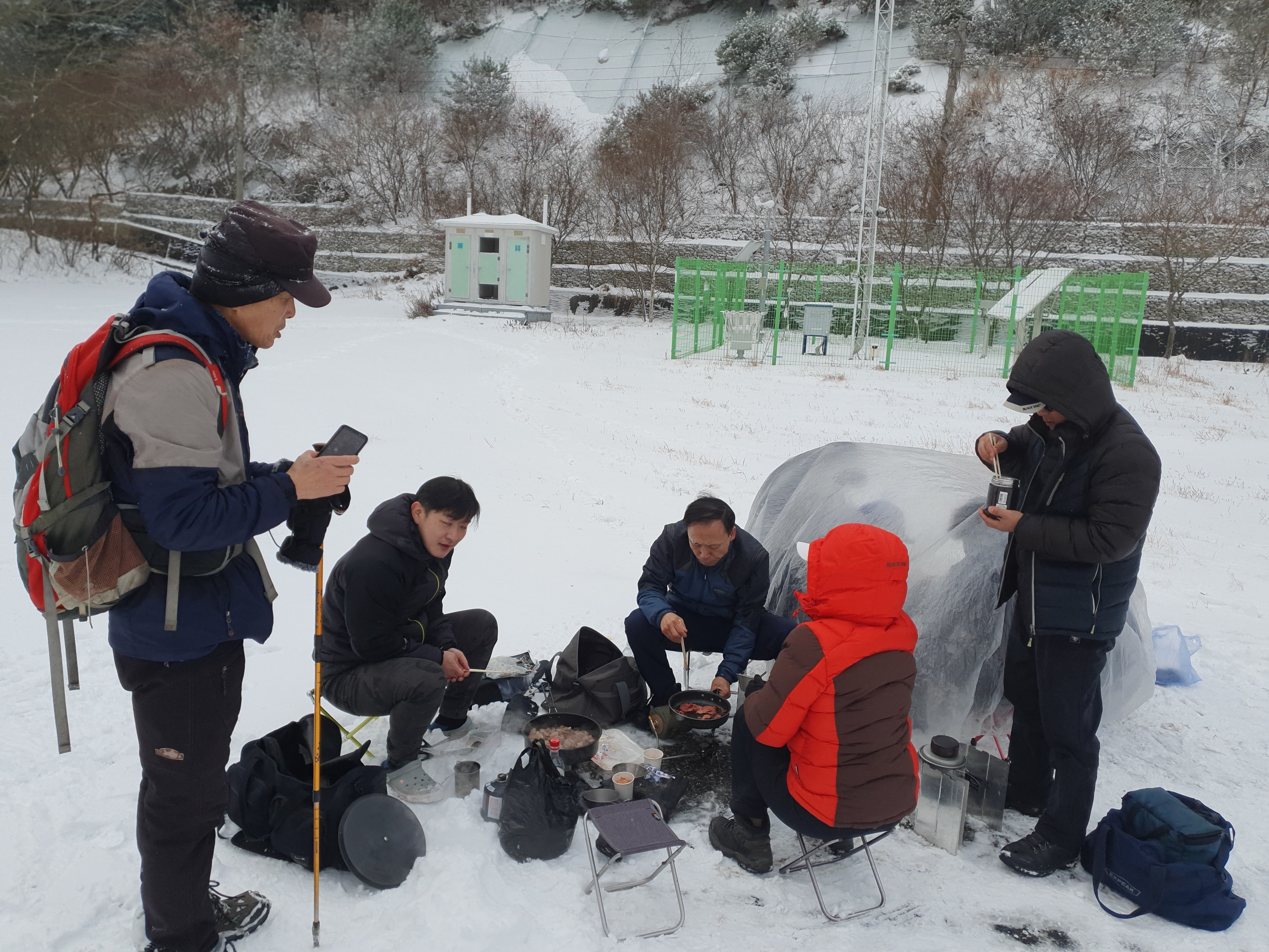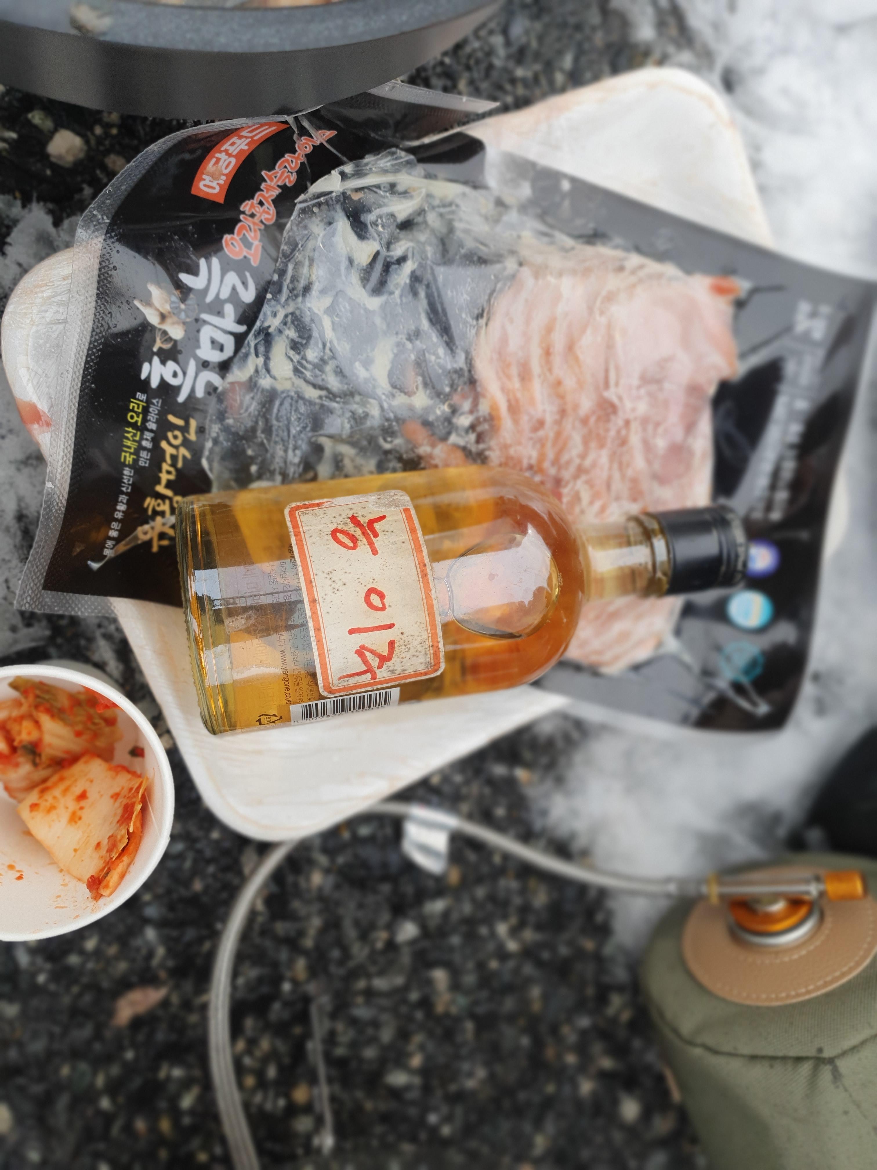그곳에서 선두분들은 라면에 약주 한잔씩 하고 계신다.