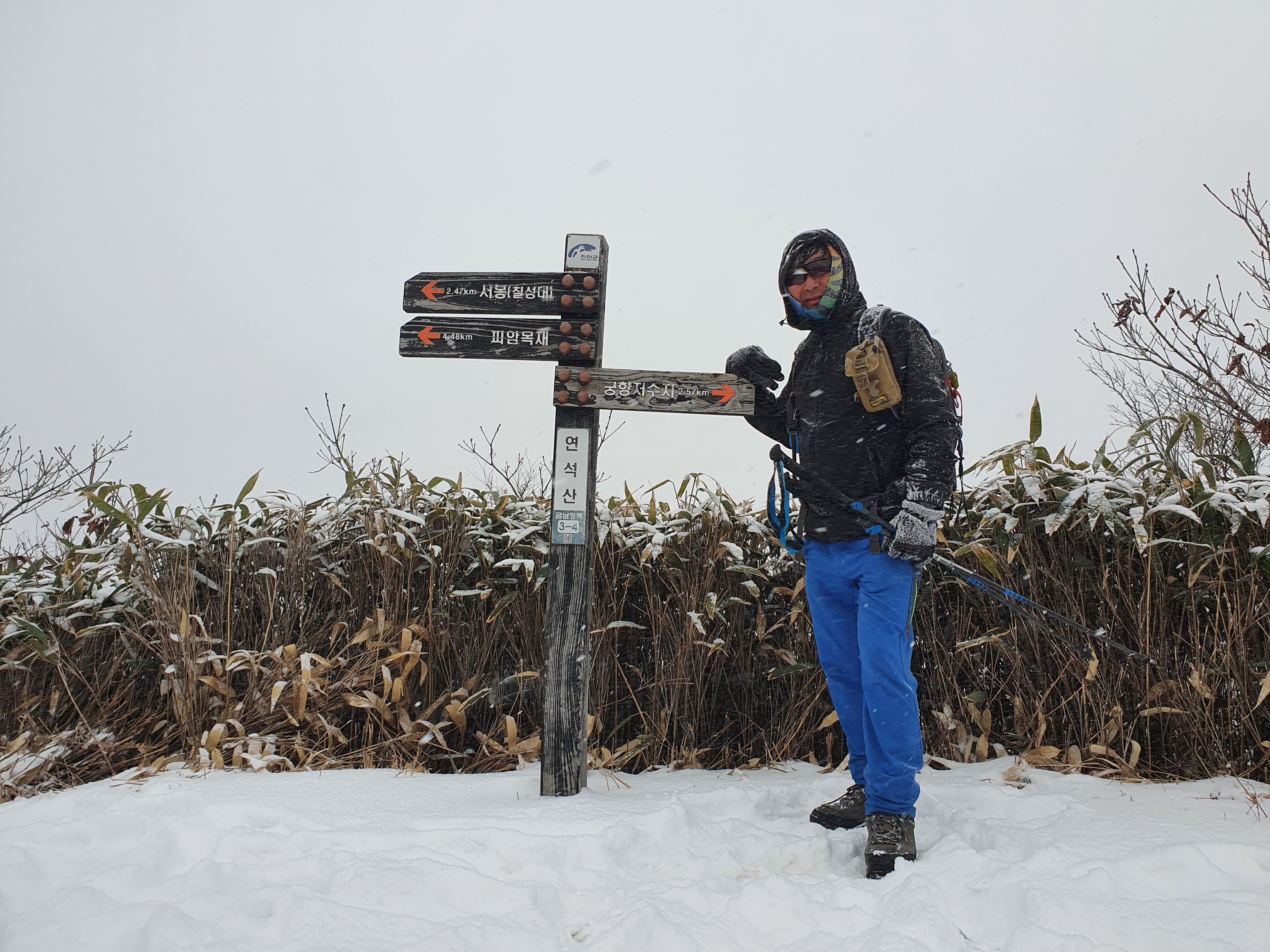 3. 산행실거리 및 시간 : (접속 모래재)-조약봉(3정맥 분기점)-입봉-보룡고개-연석산-서봉-(운장산 정상 왕복/인증)-활목재-피암목재(약18km/9시간)