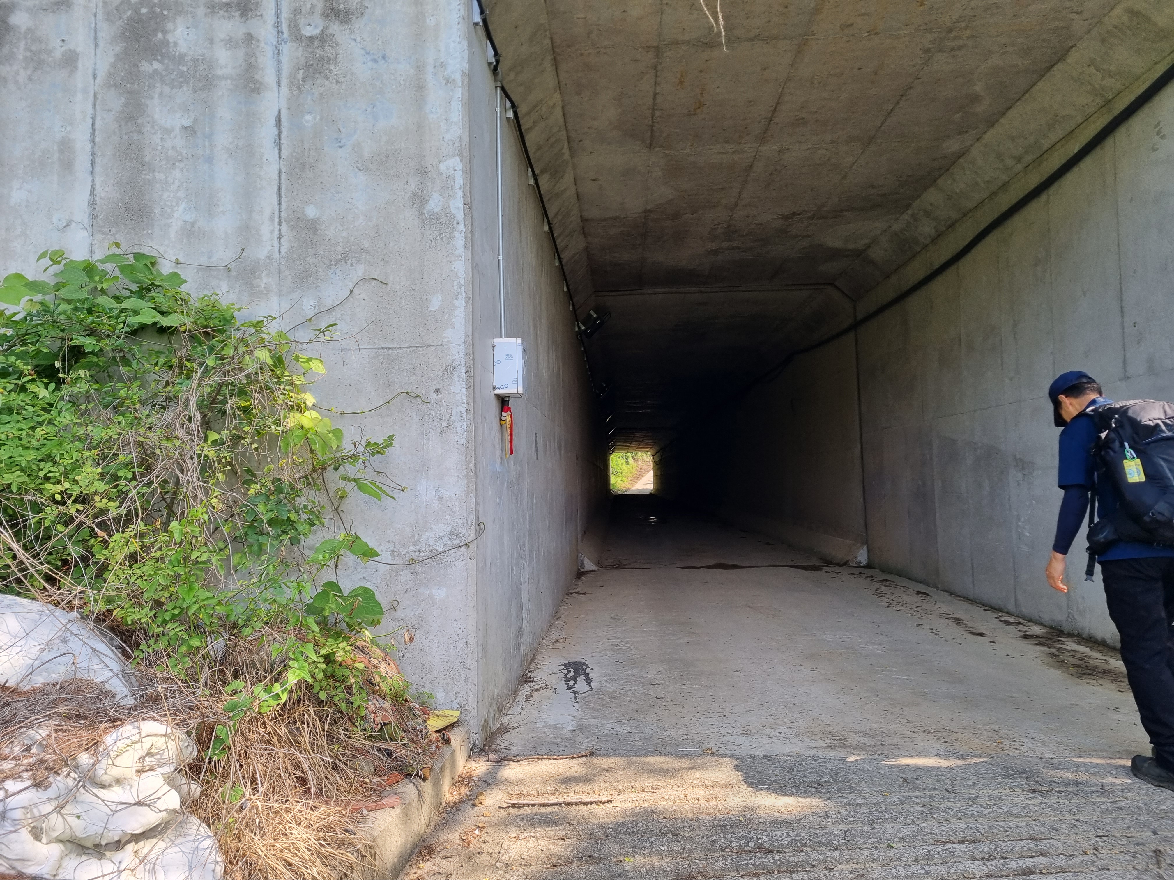 차량통행으로 불법통과는 불가능하여 좌측아래로 내려서서 지하통로로 넘어