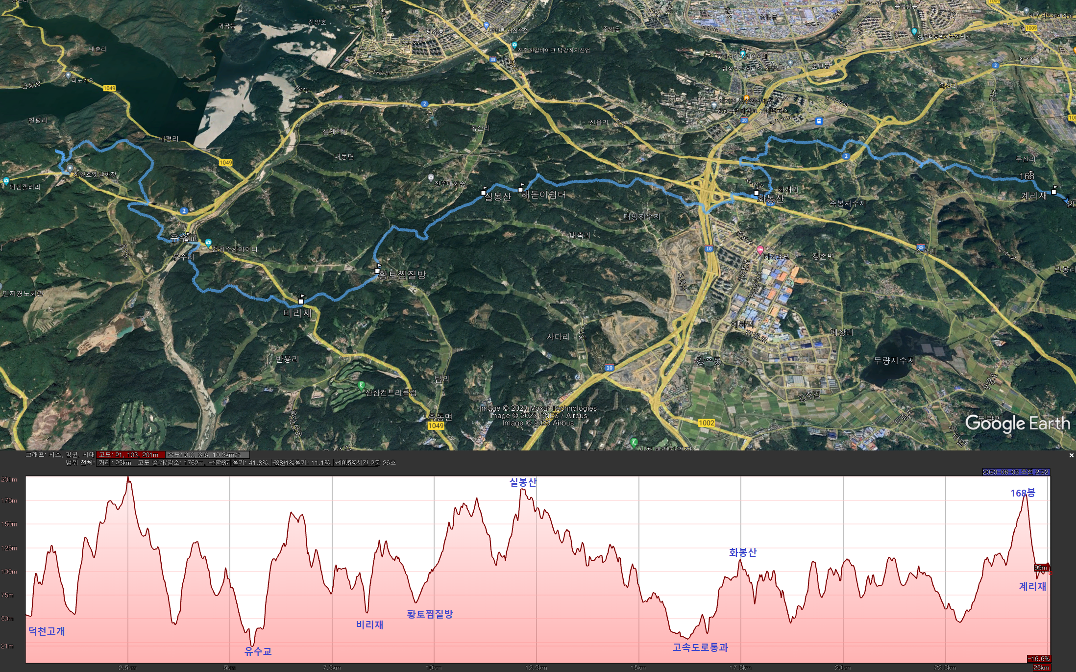 - 11시15분 : 25km 계리재(6시간35분)