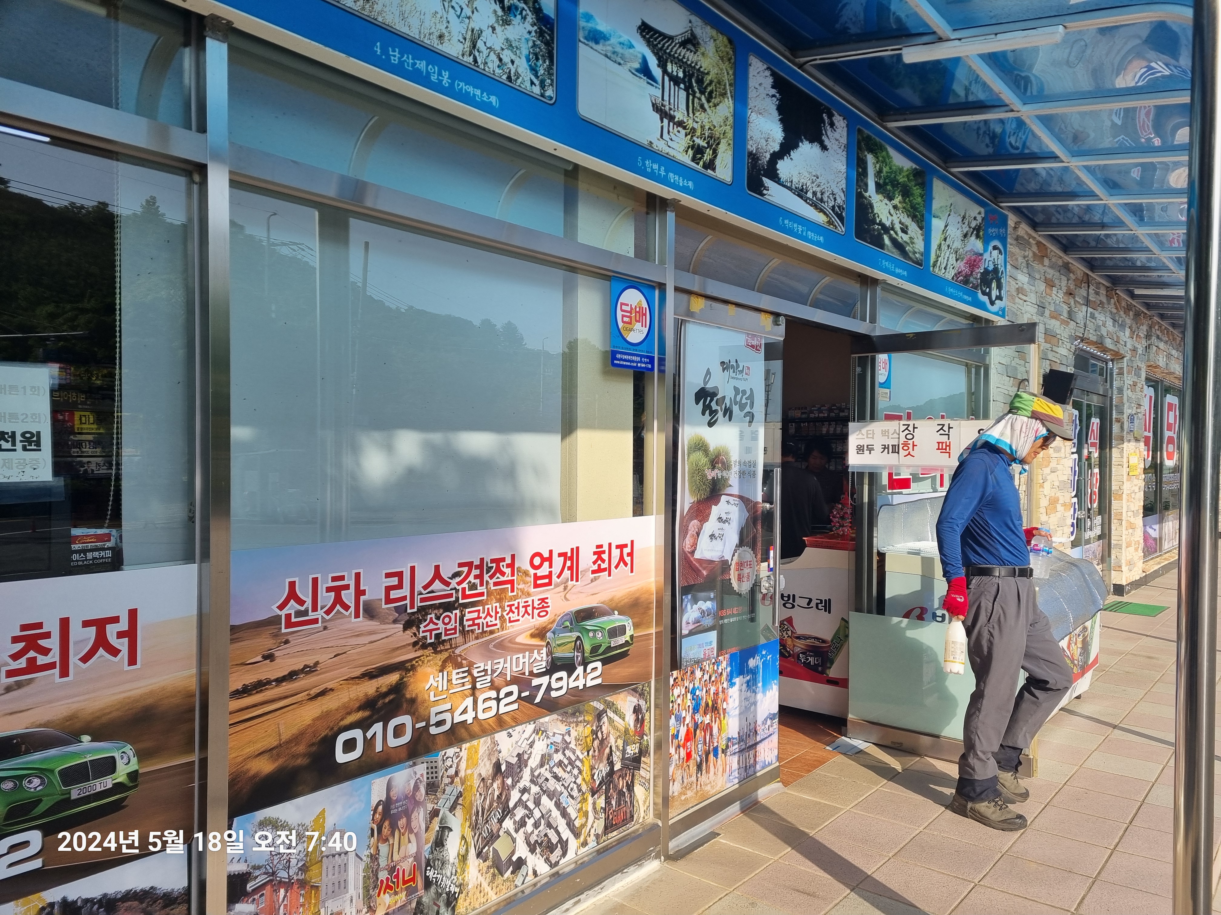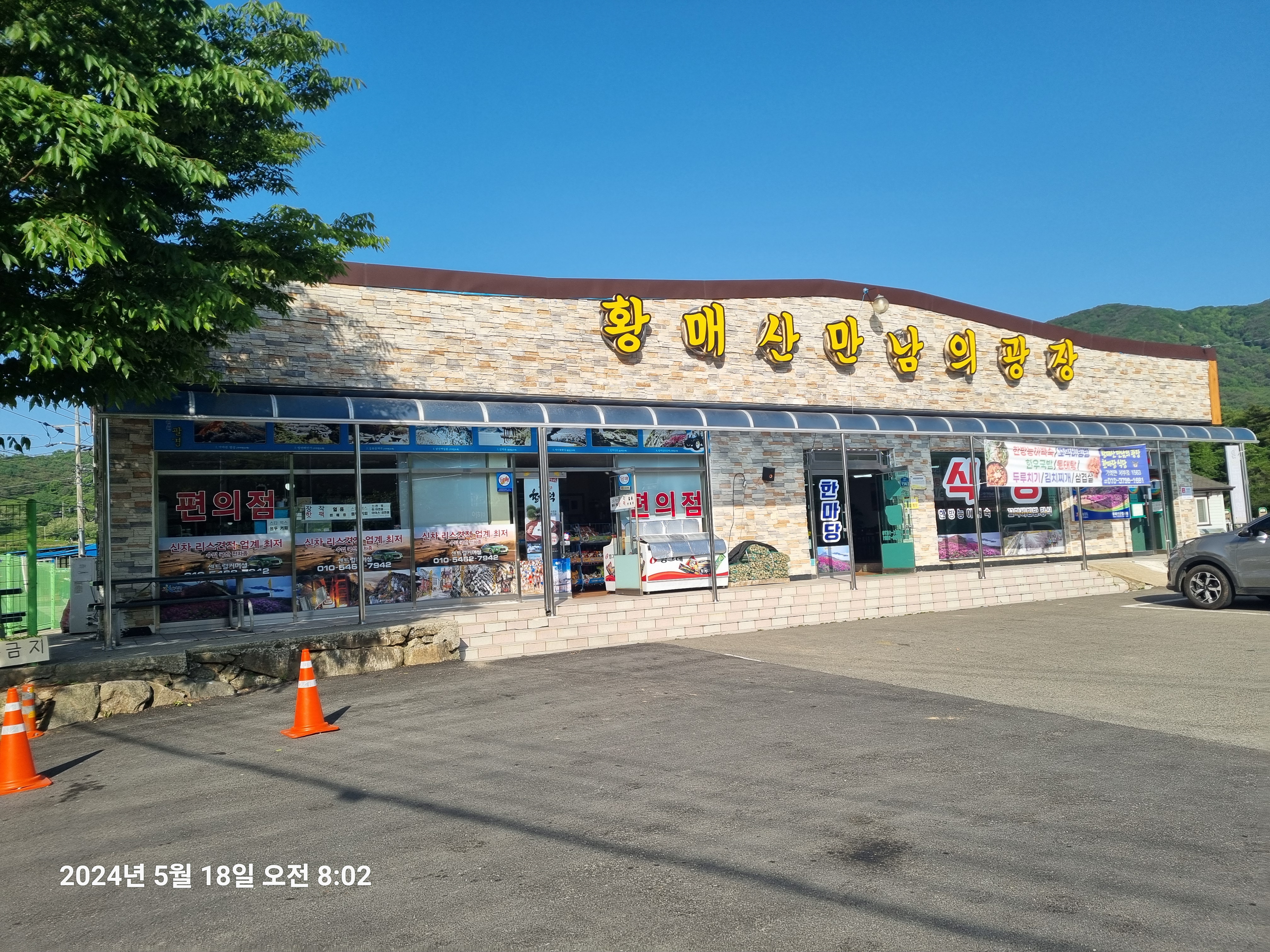 14km지점에 황매산만남의 광장 건물에 식당(8시반 open)과 편의점(일찍 open)이 있어 편의점에서 대부분 아침을 해결했고 물 보충도 가능함.