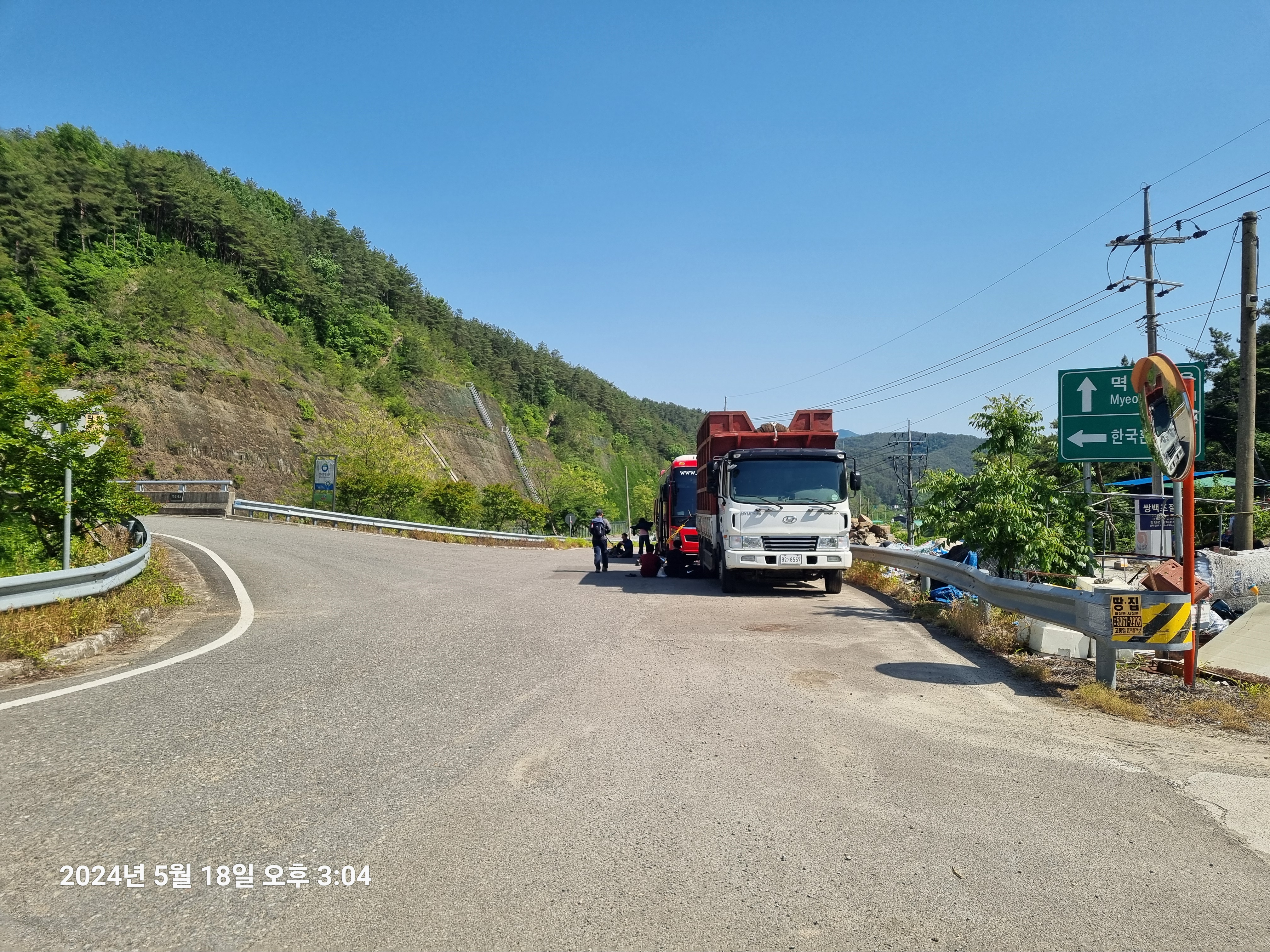 도롯가에 불피운다고 마을 주민이 신고를 한 모양이다.
