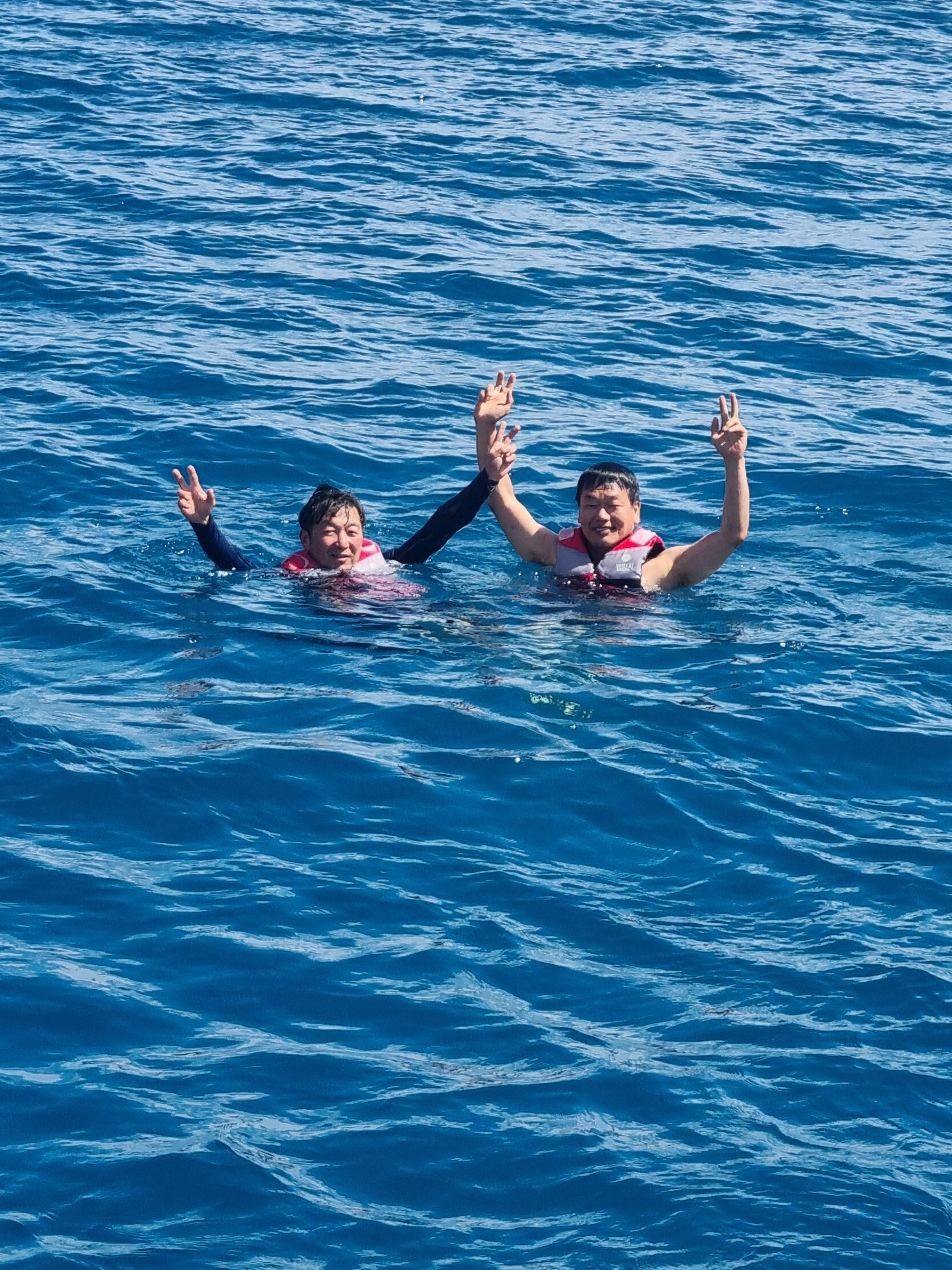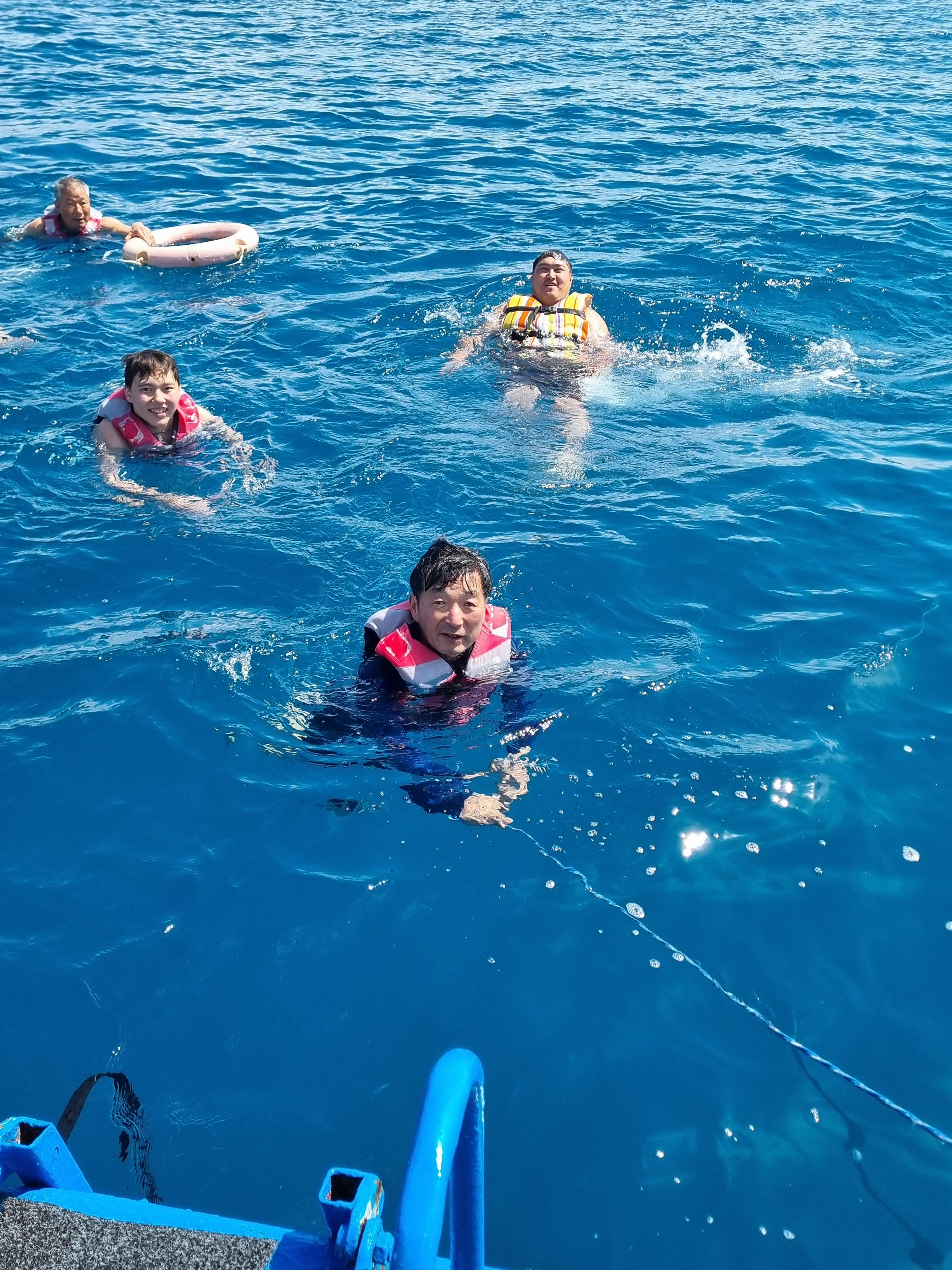 호수중앙에서 한참 수영하다 1시간만에 투어 종료.