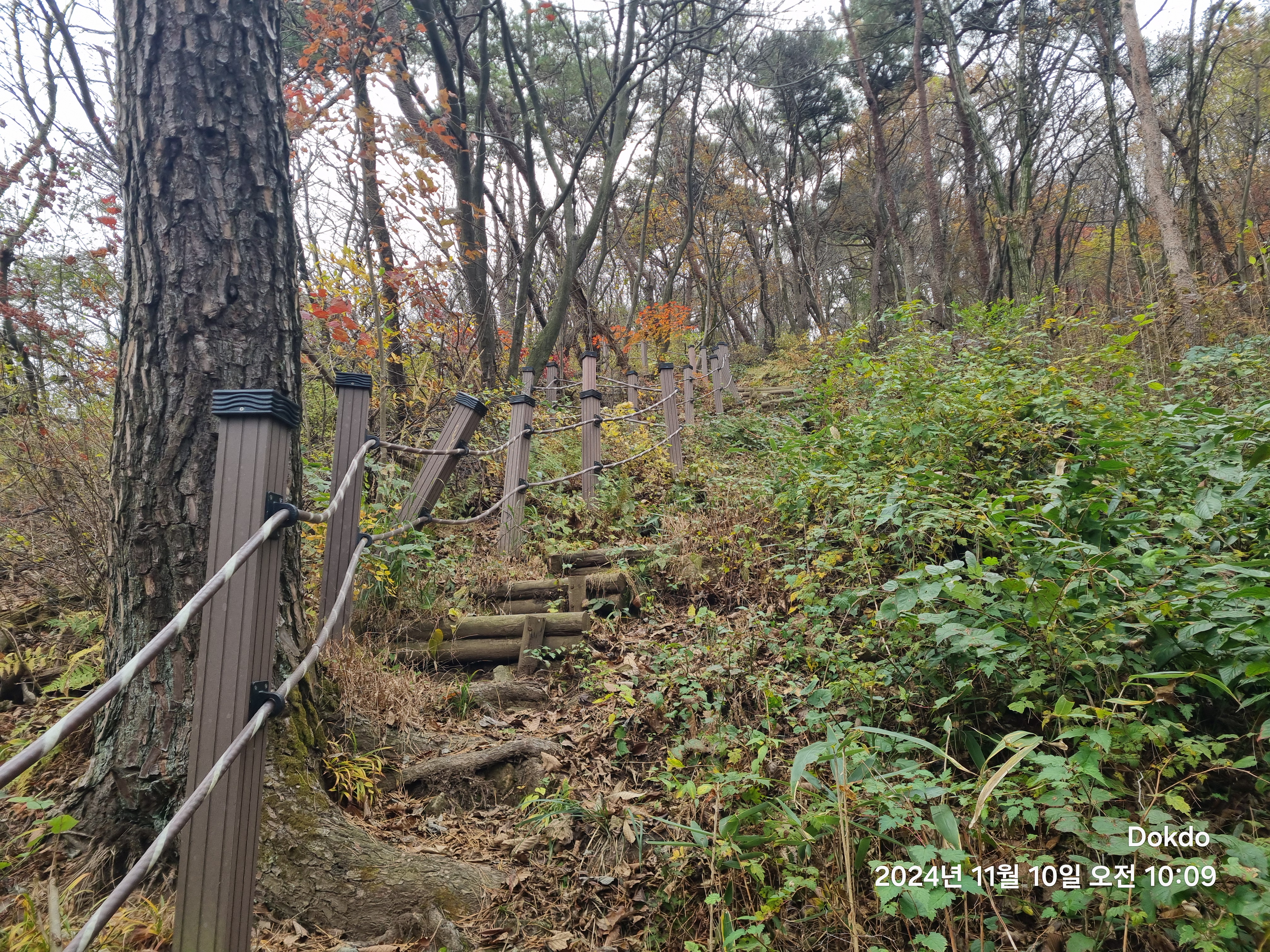o 119.4봉에서 진행방향으로 임도로 인한 절개지가 있음. 진행방향으로 우측으로 내려서서 진행가능.