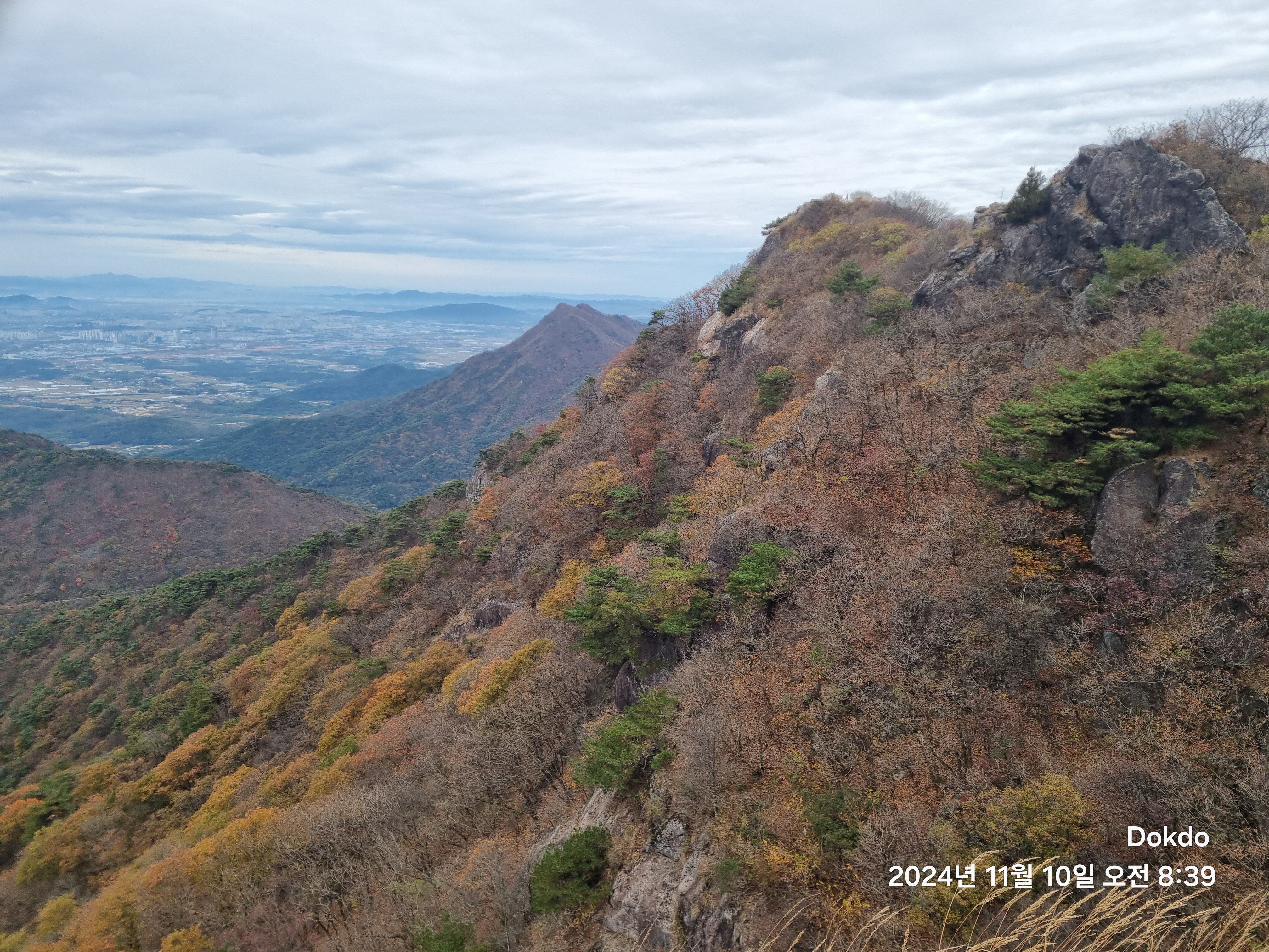 좌측 능선의 단풍이 한창이다.