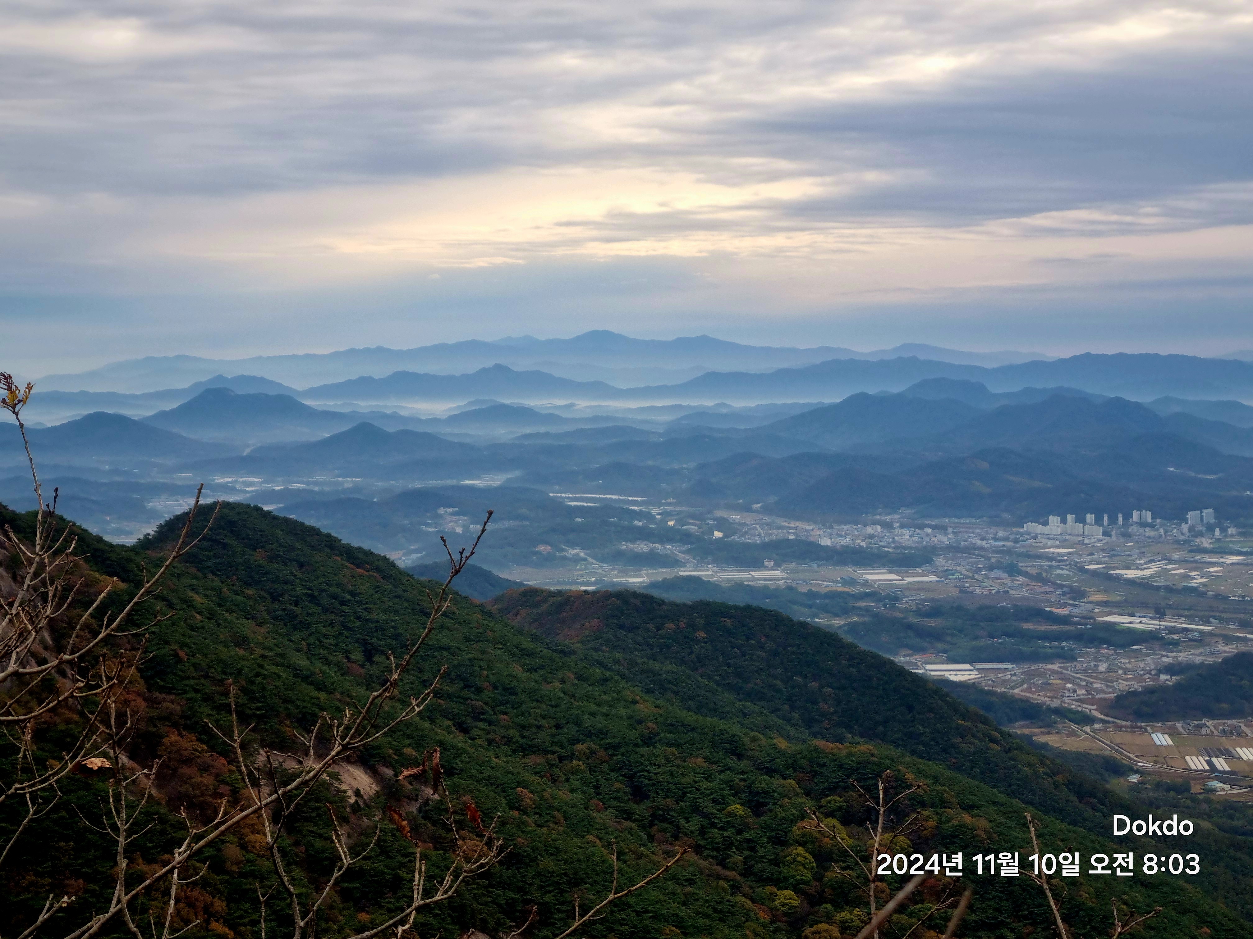 해가 올라오면서 좌측으로 멋진 조망이 트인다. 담양군 읍내가 조망된다.