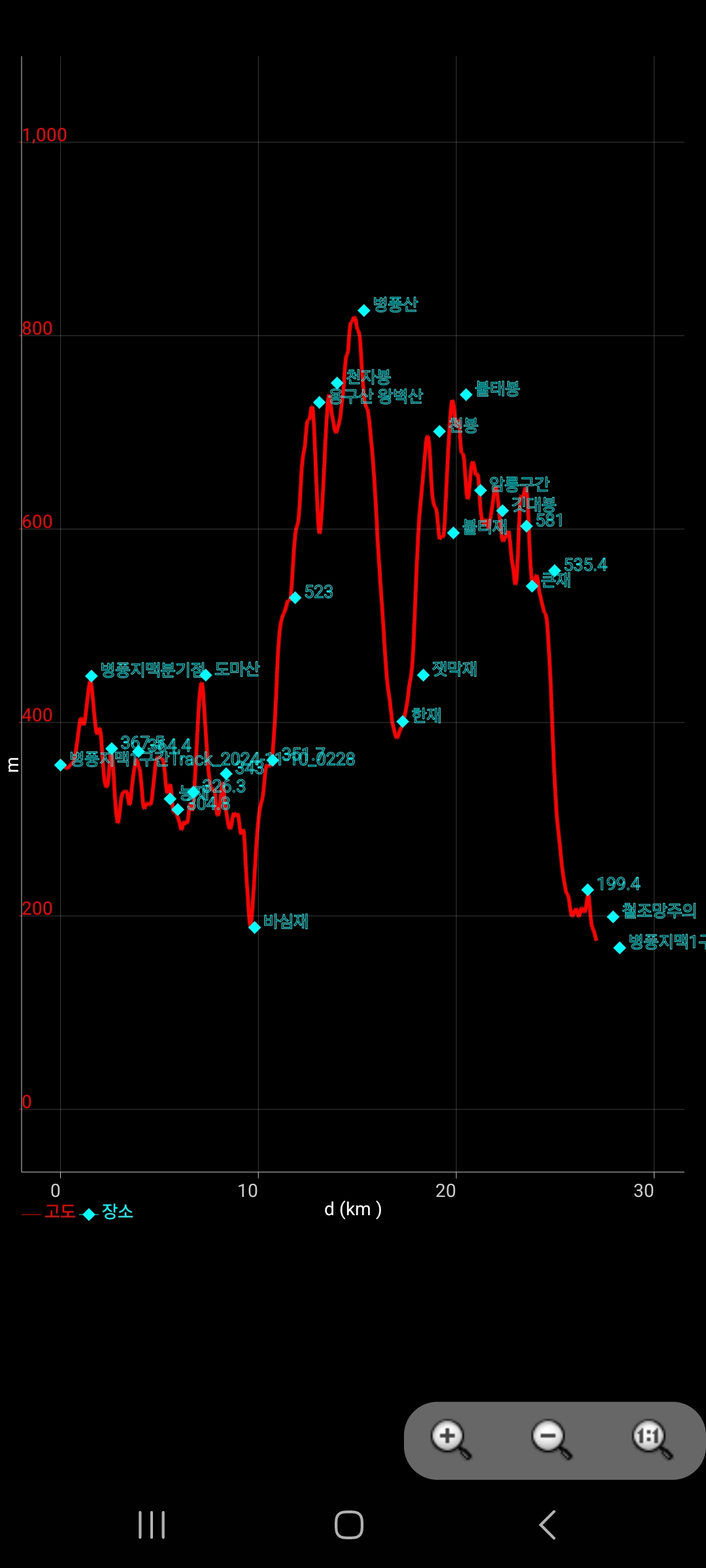 - 08시45분 : 15km 병풍산