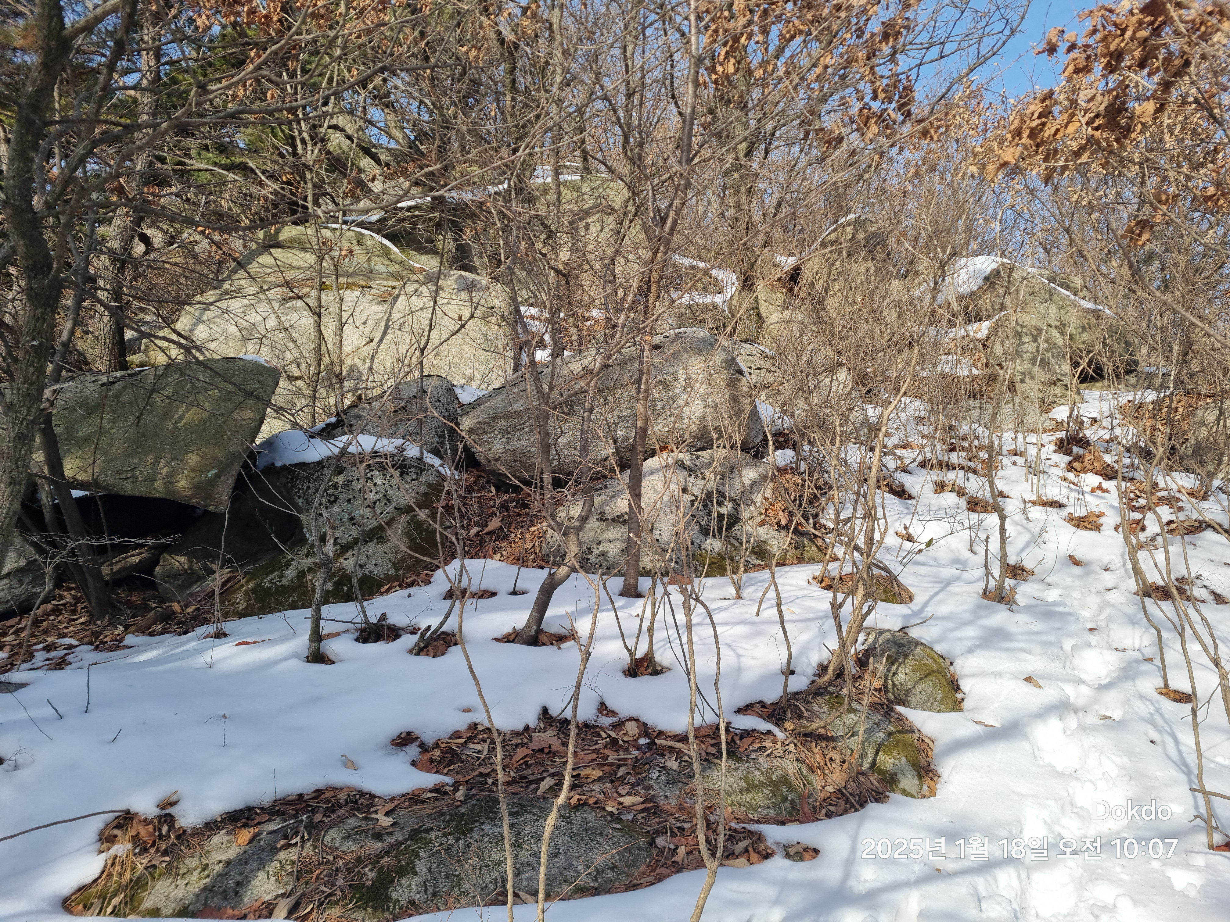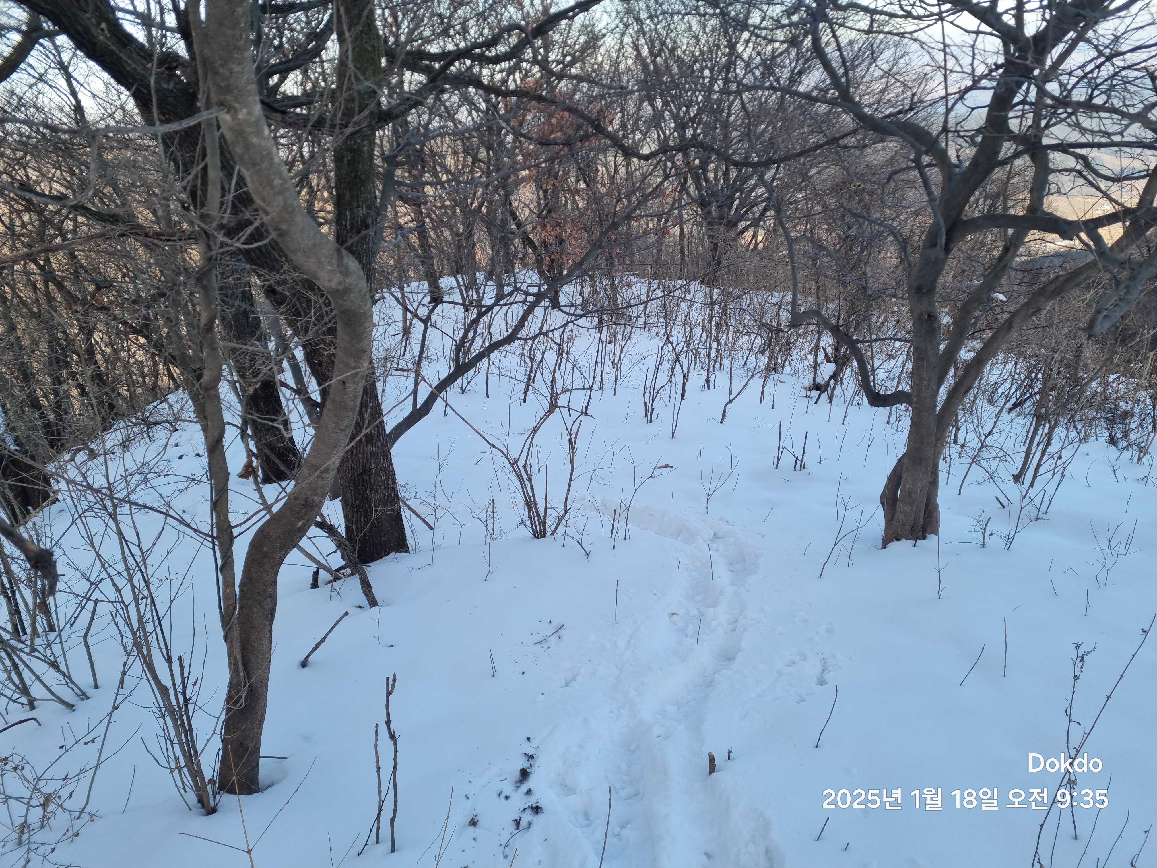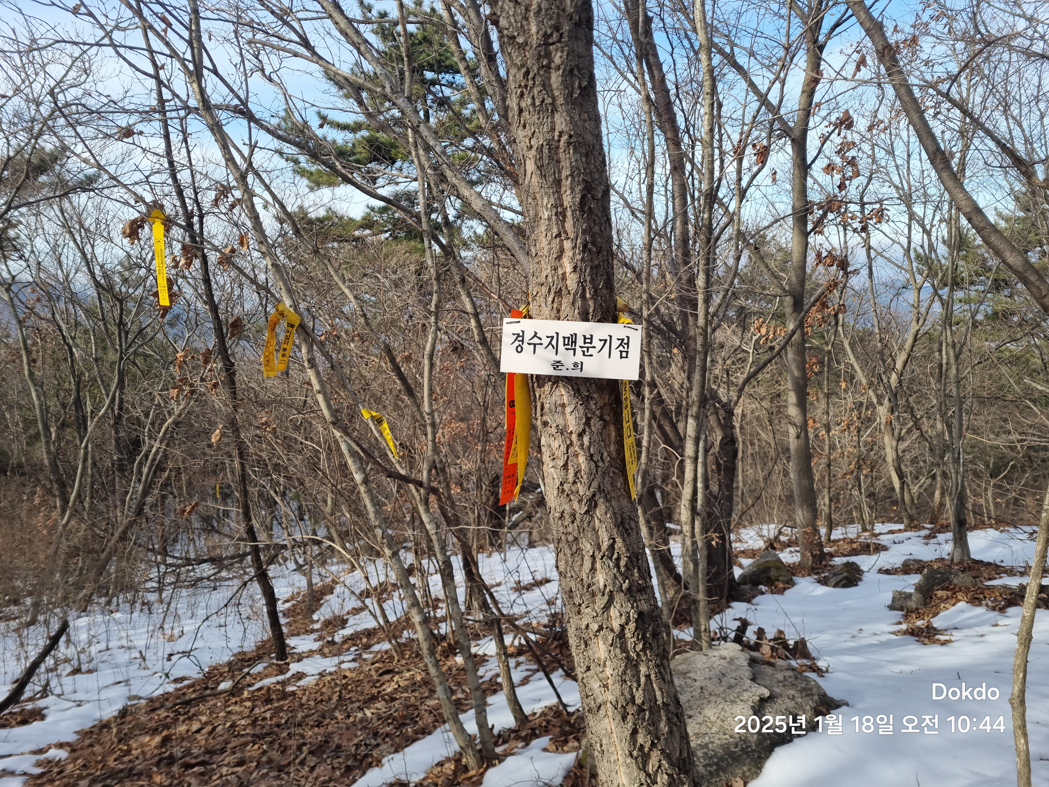 - 검곡치~수량동고개까지 임도가 있어 대부분이 임도로 진행하여 기맥길은 잔가지나 가시로 길이 좋지 않음