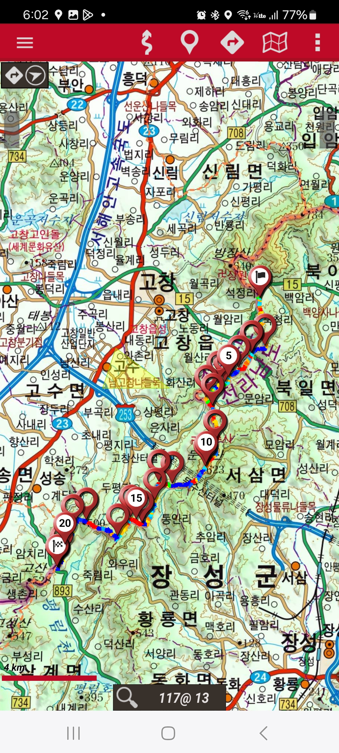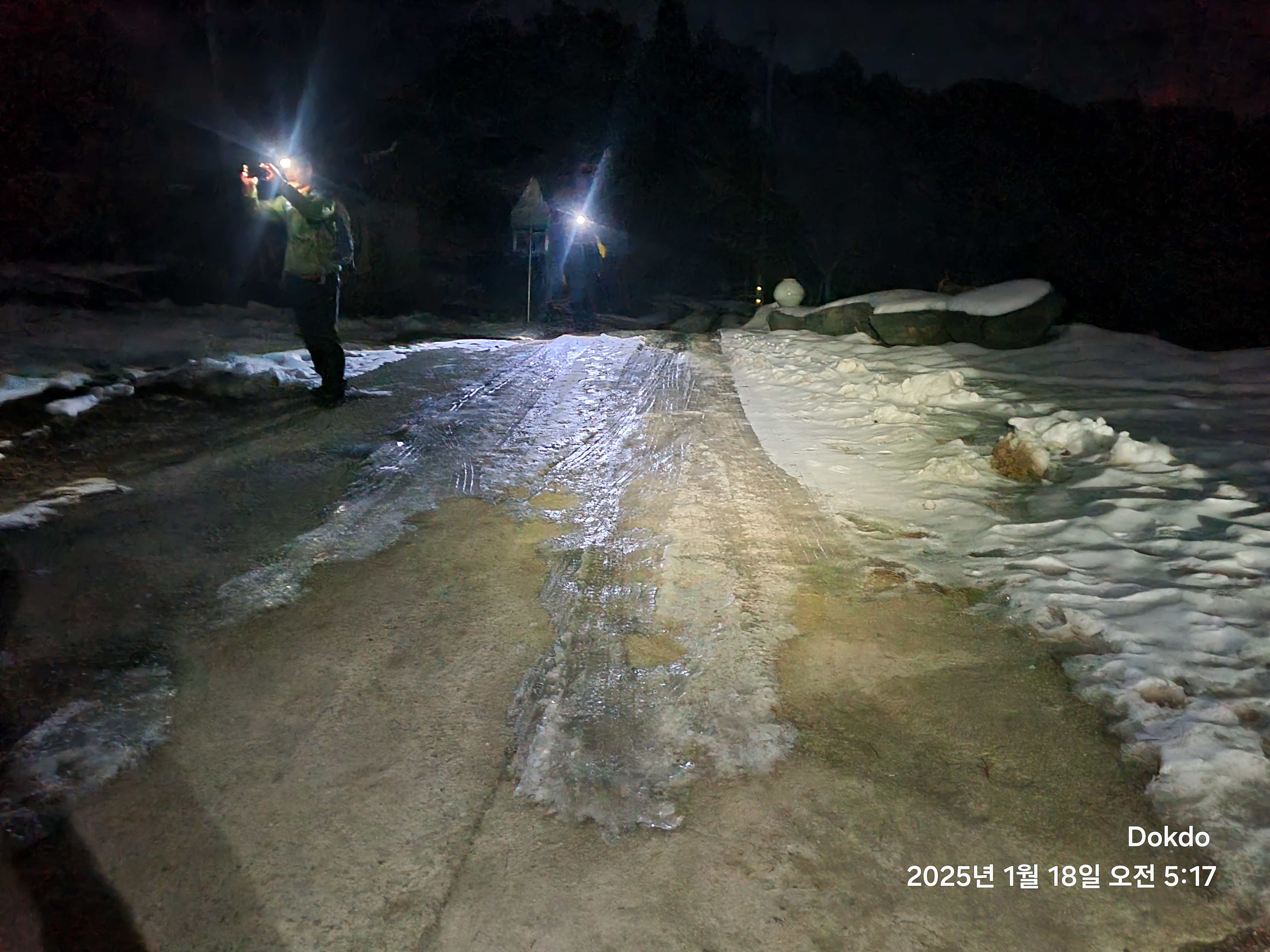 - 04시05분 : 3.0km 솔재(검곡치에서 수량동고개까지 임도로 진행)-약1.3km 단축
